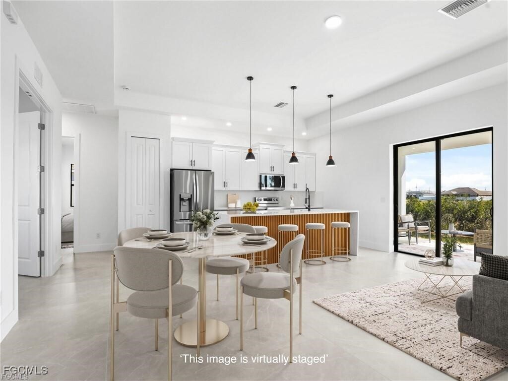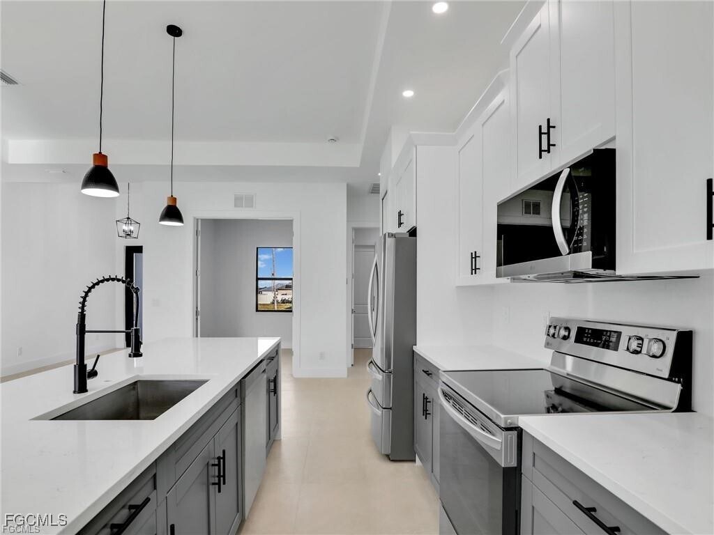 Brand-new construction move-in ready! This beautifully designed 3-bedroom + den,2-bath home is now available for rent in one of Cape Coral’s most desirable neighborhoods. Enjoy peaceful freshwater views right from your backyard. Features include a sleek modern kitchen with a quartz waterfall island and premium stainless steel appliances,soaring ceilings for an open,airy feel,a spacious laundry room with ample cabinetry,and impact-resistant doors and windows for added safety. No flood insurance required! Experience modern living at its best in this newly built home,ready for immediate occupancy!