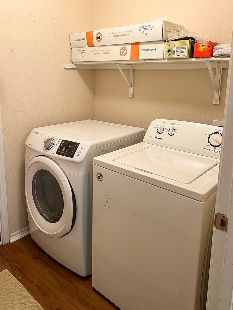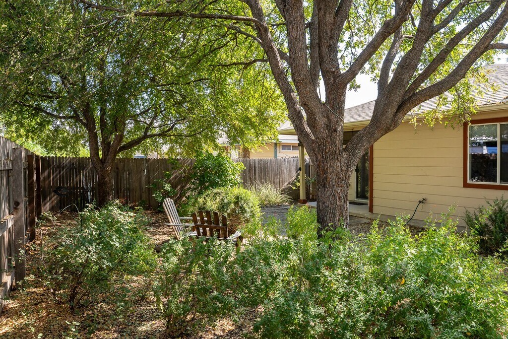 Whether you work downtown or elsewhere, this bright open-concept house with wood floors is easy access and sure to appeal. Enjoy 1,200 sq ft in this single story home with three spacious bedrooms and two full baths. Two of the three bedrooms have lighted walk-in closets, and the master bedroom has a marble tub. Indoor laundry facilities and all appliances, including built-in microwave in kitchen. Bamboo flooring in living room and hallway, and two carpet-free, high-end vinyl bedrooms and study. Just a few miles from hiking trails, HEB., 10 min. to downtown Austin, and on direct bus route to airport. · 2 bedrooms, with ceiling fans and cellular window shades; front bedroom has flat-screen TV with roku device · 1 study with bookshelves, including in closet, and large wood desk with hutch, a printer cabinet, and three drawers · 2 full bathrooms with light dimmer switches; master bath has all-marble tub · 1,200 approx. sq ft, single story · Riverside Meadows subdivision · Easy access to Hways 71 & 183, Airport Blvd., and downtown via multiple routes · Open floor plan · Covered front, back porches · Front porch swing · Light bamboo floors in LR, hallways · Ceiling fan and recessed lighting in LR · Driveway or garage parking for two cars · Two alarm panels · All-native front walkway and backyard plantings that draw hummingbirds · Shaded backyard has 8-foot cedar fence, and Adirondack chairs · No smoking on site, including e-cigarettes · Yard work taken care of, beyond mowing small front lawn
