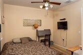Welcome to 1612 Poppy Seed Ln. Fully furnished rental in South Austin - Enjoy 1,200 sq ft in this single story home with three spacious bedrooms and two full baths. Two of the three bedrooms have lighted walk-in closets, and the master bedroom has a marble tub. Indoor laundry facilities and all appliances, including built-in microwave in kitchen. Bamboo flooring in living room and hallway, and two carpet-free, high-end vinyl bedrooms and study. Just a few miles from hiking trails, HEB., 10 min. to downtown Austin, and on direct bus route to airport. · 2 bedrooms, with ceiling fans and cellular window shades; front bedroom has flat-screen TV with roku device · 1 study with bookshelves, including in closet, and large wood desk with hutch, a printer cabinet, and three drawers · 2 full bathrooms with light dimmer switches; master bath has all-marble tub · 1,200 approx. sq ft, single story · Riverside Meadows subdivision · Easy access to Hways 71 & 183, Airport Blvd., and downtown via multiple routes · Open floor plan · Covered front, back porches · Front porch swing · Light bamboo floors in LR, hallways · Ceiling fan and recessed lighting in LR · Driveway or garage parking for two cars · Two alarm panels · All-native front walkway and backyard plantings that draw hummingbirds · Shaded backyard has 8-foot cedar fence, and Adirondack chairs · No smoking on site, including e-cigarettes · Yard work taken care of, beyond mowing small front lawn
