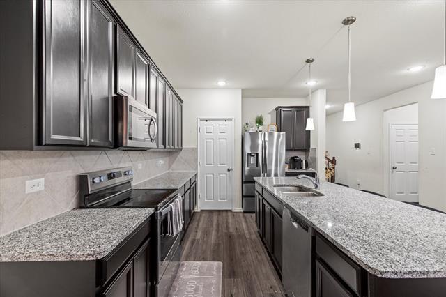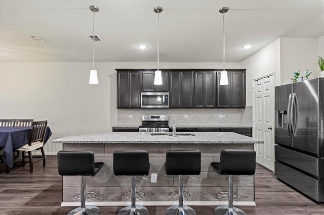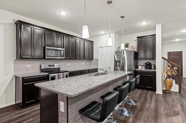 This stunning 2-story resdience is a beauty which features 4 spacious bedrooms, 3 baths, and a 2-car garage. Located in a thriving community, that includes a neighborhood pool and park. With its open concept making this home very easy to entertain guests. Another main feature is the covered patio for those nights out in the backyard star gazing with friends and family. Plenty of room upstairs for the kids to entertain themselves, studing and doing homework. One other noble mention is an office space easily converted to a 5th bedroom if needed. Note the refrigerator, stove, microwave, washer and dryer are included in lease.