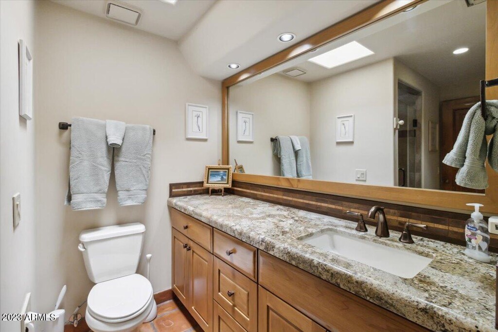 Enchanting southwest home away from home. Primary Bedroom located on first floor with cozy fireplace,California King size bed,and sitting area. Additional 2 guest bedrooms have king beds and private bathrooms. Amazing sunset,golf,& mountain view from 2nd guest bedroom deck. Convenient location within short walk to clubhouse and driving range. Access to 2 community pools/spas included in rent. Optional tenant-guest club membership available for additional cost.