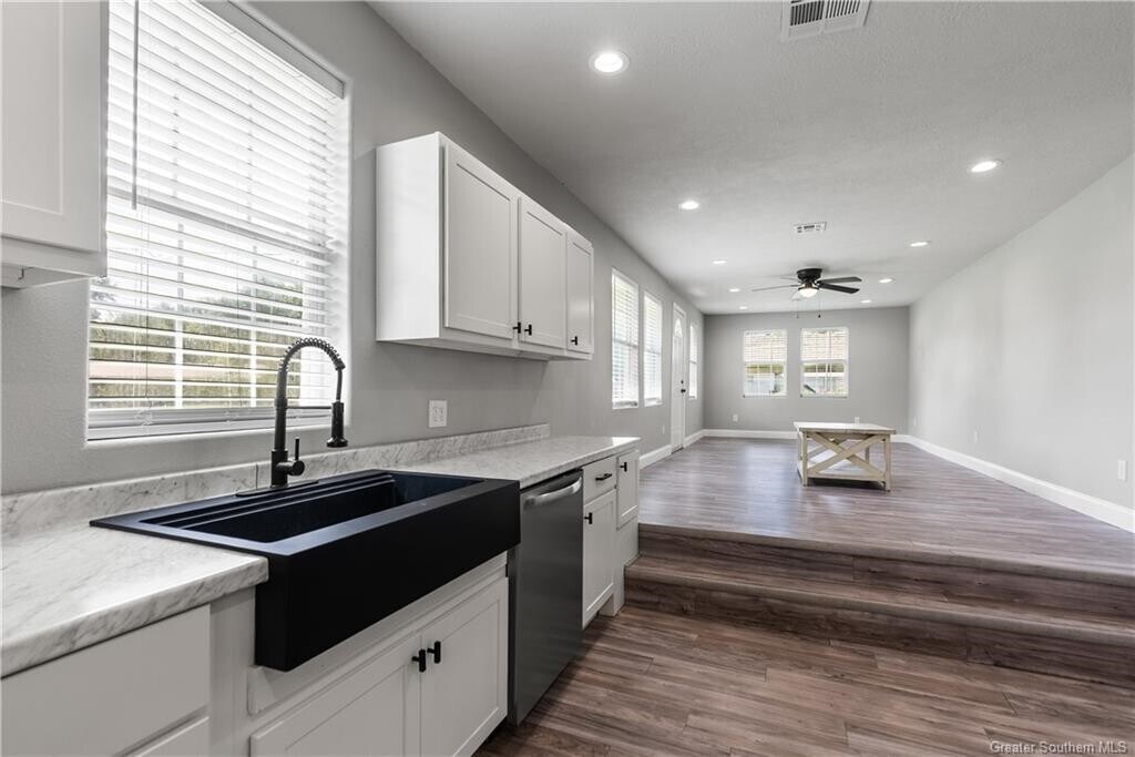 Lauren DunnAvailable for lease at $2,000 per month with a $2,000 deposit, this fully renovated 3-bedroom, 2-bathroom home in Vinton offers 1,812 square feet of beautifully updated living space on nearly half an acre. The property sits outside of a flood zone and features fresh exterior paint, a new front door, and a durable metal roof for lasting value and peace of mind. Inside, the open and airy layout is highlighted by recessed lighting, new laminate flooring, and a split-level design that adds character to the living space. The kitchen is a true showstopper with a large island, marble-look countertops, custom vent hood, floating shelves, and sleek black hardware. All major appliances including the refrigerator, stove, dishwasher, and microwave are provided for tenant convenience. A large walk-in pantry and laundry combo offers excellent storage and functionality. Both bathrooms have been fully updated with new vanities and toilets, while the primary suite boasts dual sinks and a beautifully tiled tub and shower surround. Each bedroom features modern ceiling fans, neutral colors, and spacious closets with new trim and doors. Step out back to a screened-in patio perfect for enjoying quiet Louisiana evenings, and enjoy a large backyard with plenty of space to relax or garden. The property also includes a massive 24x39 metal shop with double barn doors and side access tenant access can be negotiated as part of the lease. Landlord may allow pets upon approval, with breed discretion due to insurance requirements. A $500 non-refundable pet deposit per pet applies. All tenants 18 and older must complete a background, credit, and eviction check at a cost of $50 per applicant. This home combines comfort, style, and function in a peaceful setting ready for immediate move-in.