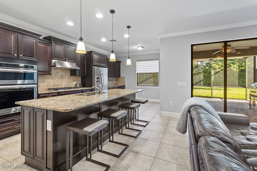 Annual Rental Available NOW! First Month & Security Deposit ONLY! Fully Furnished. Experience the very best of Naples and Southwest Florida living in this beautifully and meticulously kept 3 bedroom plus Den and 2 full bath single family home in the highly sought after gated community of Camden Lakes in centrally located North Naples. Nearly 2,000 Sq Ft of living Space. Step inside from the warm Florida sun into the foyer and you are greeted by the first bedroom to the right with the kitchen and living area straight ahead. The kitchen enjoys granite counters,a GAS stovetop,center island,coffee bar,stainless steel appliances,disposal,and pantry. Entertaining guests is a breeze with great flow from the kitchen to the living area and the enclosed lanai through the sliding glass doors. The enclosed lanai enjoys Northern exposure and has plentiful natural light. Your primary bedroom features a double vanity,water closet,large walk-in closet,and separate shower and tub. The remaining guest bedroom has plentiful storage and space for your out of town guests. Peace of mind is enhanced with your 2 car garage,laundry in residence,laundry tub,and close proximity to the Clubhouse and community pool. Camden Lakes residents enjoy the clubhouse with the exercise room,community pool,basketball court,outdoor grilling,and club room. Situated North of Immokalee Rd off Livingston Rd,you are mere moments from shopping and dining at Seed To Table,Mercato,and Downtown Bonita Springs. You can have toes in the sand at famed Naples beaches within 15 minutes. Enjoy this exquisite lifestyle with an exceptional A+ rated school system!