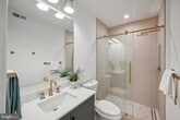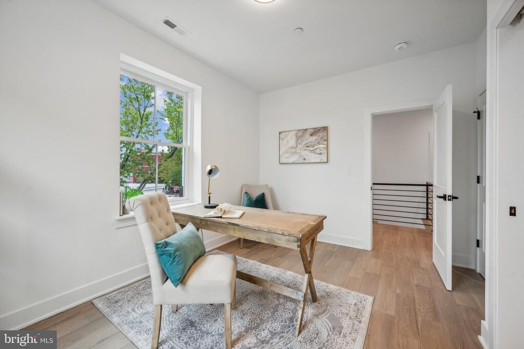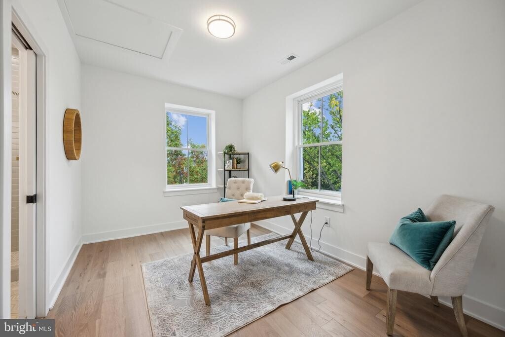 Modern elegance meets historic charm in this expansive upper-level residence, offering 3 bedrooms + den, 3 full baths, and two spacious levels designed for today’s lifestyle. Parking included. The main floor unfolds in an airy, open-concept layout with a sunlit living room, a chef’s kitchen, and a window-wrapped dining room perfect for entertaining. The kitchen is a showpiece, featuring an oversized island, quartz counters, induction range, vented hood, pot-filler, and abundant storage. Wide-plank white oak floors run throughout, amplifying the light and warmth. A large bedroom and full bath complete this level. Upstairs, the primary suite is a retreat with space for a king bed, a spa-inspired bath, and walk-in closets. A versatile den is ideal as a home office or studio, while a second bedroom suite with its own bath offers privacy for guests or family. Laundry is conveniently located on this level. Residents can also take advantage of the shared rooftop terrace, with sweeping views of Rock Creek Park and the National Cathedral. With the Zoo and park steps away, and Columbia Heights Metro just a half mile, 1614 Kilbourne Place balances natural beauty with vibrant city living in one of DC’s most sought-after neighborhoods.