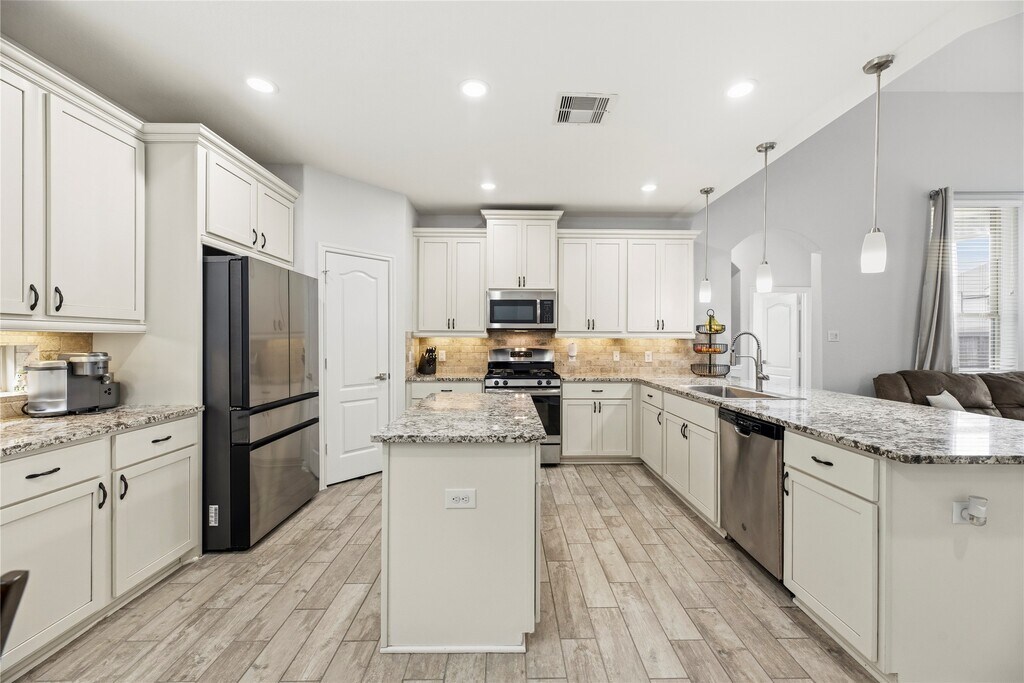 This beautifully updated 2-story home blends modern style,comfort & functionality. With 4 bedrooms,3.5 bathrooms,fresh paint & new carpet,it’s completely move-in ready. The open layout features a spacious family room flowing into a kitchen with white cabinetry,stainless steel appliances,a gas range,and a large breakfast bar. Wood-look tile flooring adds timeless charm,while a formal dining room offers sophistication. The primary suite is a serene retreat with a dual-sink vanity,soaking tub,shower & walk-in closet. 2 remodeled bathrooms with on trend finishes & the upstairs game room is perfect for family fun or relaxation. Thoughtful upgrades include epoxy-coated garage floors and an EV charging station. Outside,enjoy a covered patio and backyard with a sprinkler system. Zoned to top-rated CFISD schools and nestled in the Bridgeland community,you’ll love the resort-style amenities,scenic trails,and nearby shopping. MLS ID 89097449