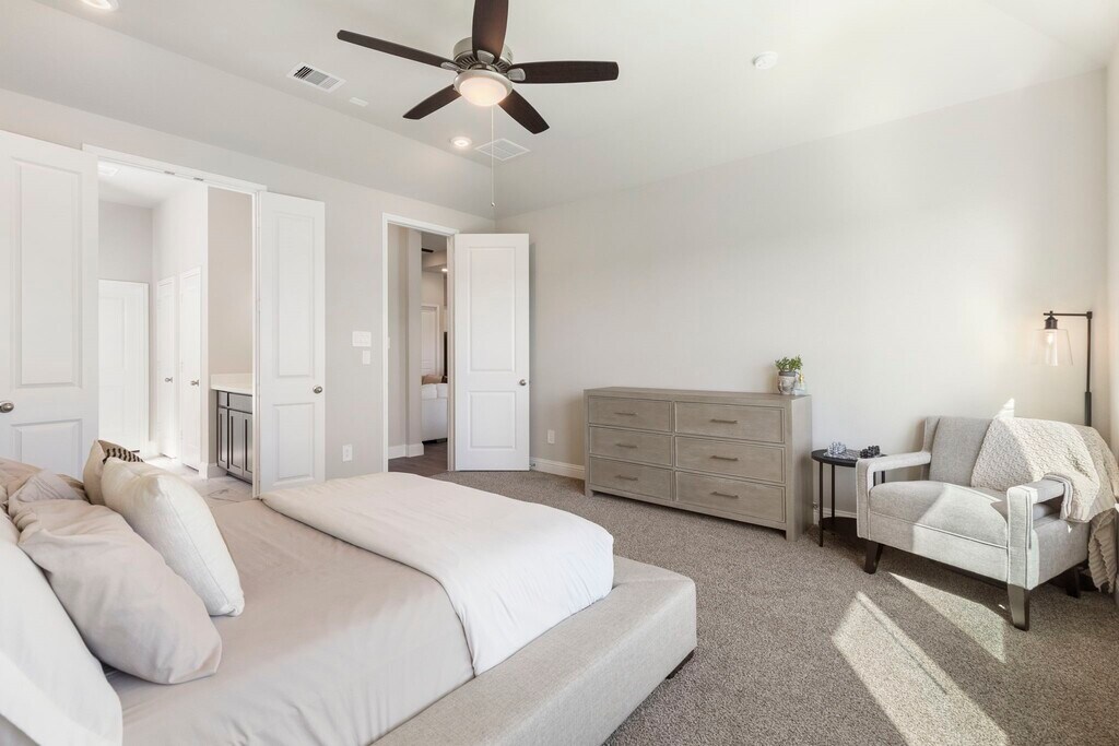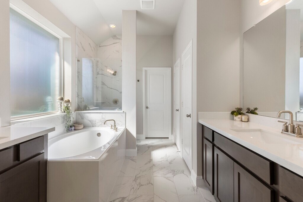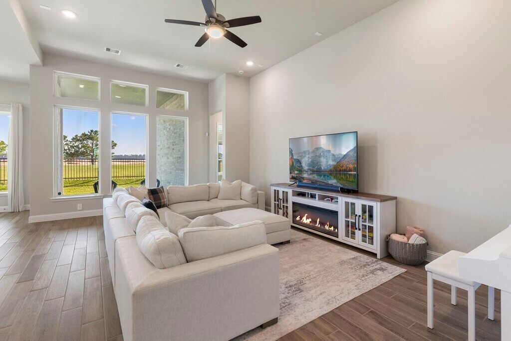 This 1 Story Beazer McKinney FloorPlan has no back neighbors and is loaded with upgrades. Located on the greenbelt with a view of the lake,it features 4 Bedrooms 3.5 Bath,Flex Space/Media room and a dedicated office space. 2 car garage with an extra 5ft ext with EV charger,storage racks,and epoxy floors.The home has 12 ft ceilings,lots of natural light,chef sized kitchen with Quartz counters,Convection oven,Gas Cooktop with griddle,pots/pan drawers,double trash can pullout,pop up receptacle on island,reverse osmosis and tons of storage. Open concept living with Kitchen/Dining/Family room. Mavera is a master planned community with parks,lakes,walking paths,resort style pool and splash pad,covered pavilion,Wiffle Ball Field,2 Pickleball Courts,and Outdoor Biergarten. Sprinkler system,brand new elementary and middle school. No section 8 MLS# 74533269