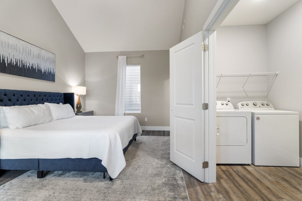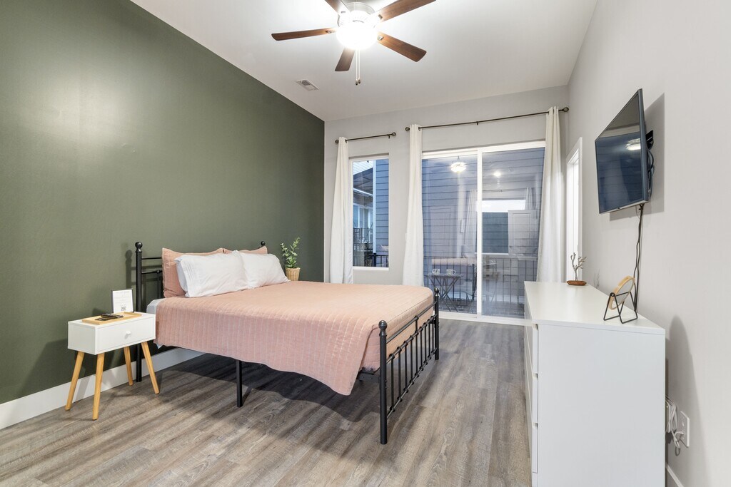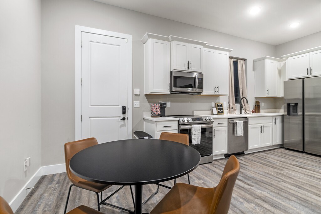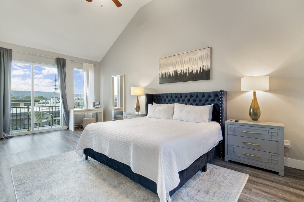Centrally located in Chattanooga’s vibrant Southside district, this fully furnished 2BR/2.5BA townhome offers a warm, inviting space ideal for mid-term stays, employee housing, relocations, or anyone needing a comfortable temporary home. Just steps from OddStory Brewing and minutes to UTC, Erlanger Hospital, CHI Memorial, BlueCross BlueShield, the Tennessee Aquarium, the Chattanooga Convention Center, and Downtown. Only 20 minutes to the Volkswagen plant, with fast access to I-24 and I-75 for easy commuting. First Floor: Open living and dining area with a comfy couch, flat-screen TV, Xbox, board games, and 10’ ceilings. The fully equipped kitchen includes a full-size refrigerator, stovetop, cookware, dishes, and a Keurig. A half bath is also located on this level. Second Floor: Bedroom with a queen bed, crisp linens, room-darkening curtains, en-suite bath, walk-in closet, dresser, TV, and a private balcony overlooking the courtyard. Third Floor (Primary Suite): King bed, 50" TV, large walk-in closet with a second washer/dryer, in-room vanity/desk, and a private balcony with mountain views. Designed for longer stays, the home includes thoughtful conveniences: • All utilities included (electric, water, and EPB fast fiber internet) • Dedicated workspace • Two sets of laundry • Ample closet and drawer space • One dog allowed (with approval) • One reserved, numbered parking spot, plus additional unassigned parking throughout the complex Rental Terms: This property uses seasonal mid-term pricing ranging from $2,000–$3,000 per month. The advertised price reflects the lowest seasonal rate. Share your desired dates, and we’ll provide an exact quote. • Fully furnished • Minimum stay 31 days • Month-to-month and flexible mid-term options available • $200 cleaning fee • $1,000 minimum security deposit A cozy, comfortable, and centrally located home in one of Chattanooga’s most vibrant neighborhoods—perfect for settling in while keeping everything you need close at hand.