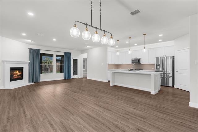 Charming 3-bed, 2-bath home for lease in the sought-after Light Farms Sweetwater community, zoned to top-rated Prosper ISD. Enjoy an open-concept layout with hardwood-style floors, a spacious kitchen with stainless appliances, and a cozy gas fireplace. The primary suite features a large walk-in closet and spa-like bath. HOA covers front yard mowing, while the backyard boasts elegant, low-maintenance synthetic turf. Community amenities include pools, fitness center, trails, parks, and more. Easy access to DNT, dining, and shopping!