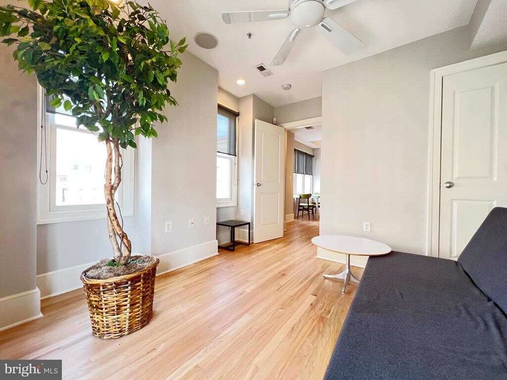 Unbeatable location. This unique and luxurious 2-bedroom, 2-bath penthouse is located in The Foster, a boutique four-unit historic building in the heart of Logan Circle developed by the award-winning Murillo/Malnati Group. Just one block from the vibrant 14th Street Corridor and Whole Foods, with easy walking access to both Dupont Circle and Logan Circle. Remodeled in 2022, the residence features a private roof terrace with a five-person hot tub and spectacular city views. Interior highlights include a dramatic 13-foot ceiling in the primary bedroom, a private balcony off the second bedroom, hardwood floors throughout, and a remote-controlled gas fireplace. The kitchen is outfitted with stainless steel appliances, a gas range, and quartz countertops. Bathrooms feature travertine marble showers. Additional features include built-in bookcases, ceiling fans in the bedrooms and living room, Mecho roller shades, a full surround-sound speaker system throughout, video phone entry, full-size washer and dryer, and abundant closet and storage space. A rare opportunity in one of the city’s most sought-after neighborhoods.