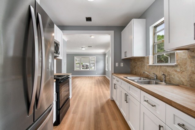 ALL UTILITIES AND LAWNCARE INCLUDED IN RENT! St. Pete HA Vouchers Accepted! Welcome to this beautifully renovated three-bedroom, one-bath duplex! Step inside to find luxury vinyl flooring throughout and freshly painted walls and baseboards that give the home a modern, clean feel. The kitchen is equipped with stainless steel appliances, including a microwave and refrigerator, and features stylish wooden countertops that add warmth and charm. Each bedroom is perfectly sized to accommodate a queen-sized bed sets, offering both comfort and functionality. The spacious dining area provides a great space for entertaining or family meals. The fully renovated bathroom features stunning tile work and a lovely modern vanity. Stay cool year-round with a brand new AC unit a must-have in the Florida heat. Please note: Washer and dryer is located outside and shared with other unit. (Currently vacant). Rental Requirements: Clean or decent background No evictions in the last 5 years Utilities included in rent: Electric, water, sewer, lawn care Wifi: $30/mo Washer and dryer: $25/mo