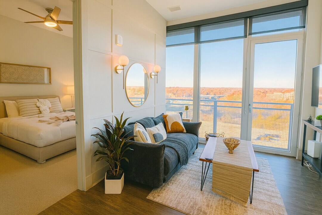 Feel at home in this modern 2-bedroom, 2-bath apartment in Tysons. This stylishly designed apartment features floor-to-ceiling windows. Enjoy fast Wi-Fi and resort-style amenities, including a 24/7 gym and lounge. Parking is available in the building's garage for an additional daily or monthly fee and must be arranged in advance. Pets are welcome for an additional daily or monthly fee; please inquire before booking. Located just steps from the McLean Metro and minutes from Tysons Galleria. A deposit is required for extra keys. [SI]