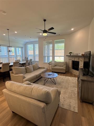 Welcome to 1616 Bulls Eye Rd, a beautifully designed 3-bedroom home offering over 2,200 sq ft of refined living space in one of Mansfield’s most sought-after communities. With its modern exterior, rich brick detailing, and striking dark accents, this home delivers exceptional curb appeal from the moment you pull up. Step inside to an open and airy floor plan featuring high ceilings, elegant finishes, and natural light throughout. The spacious living area flows seamlessly into the gourmet kitchen, perfect for family gatherings and entertaining. A dedicated private office provides the ideal setup for remote work or study. Movie nights reach a new level in the fully enclosed theater room, offering a true cinematic experience right at home. The primary suite is a peaceful retreat complete with a spa-inspired bathroom and generous walk-in closet. Two additional bedrooms provide flexibility for family, guests, or additional workspace. Outside, you'll find a clean and well-kept yard that’s simple to maintain and ready for outdoor enjoyment. Located just minutes from top-rated Mansfield ISD schools, parks, shopping, restaurants, and major highways—this home blends comfort, convenience, and style in one exceptional package.