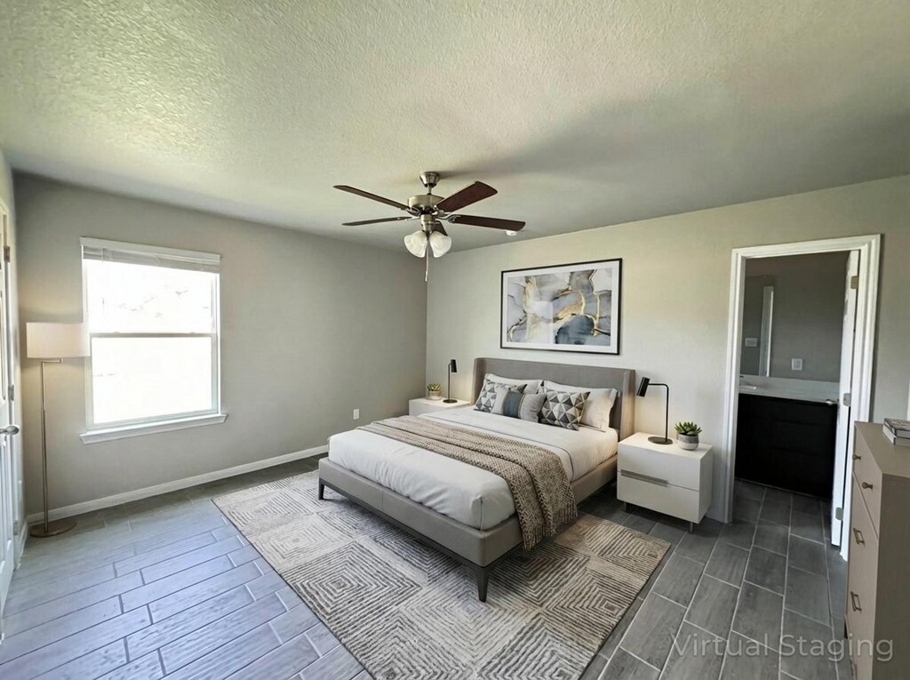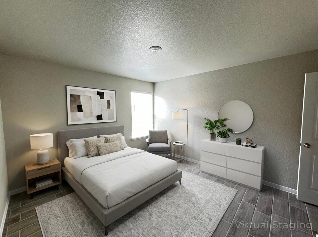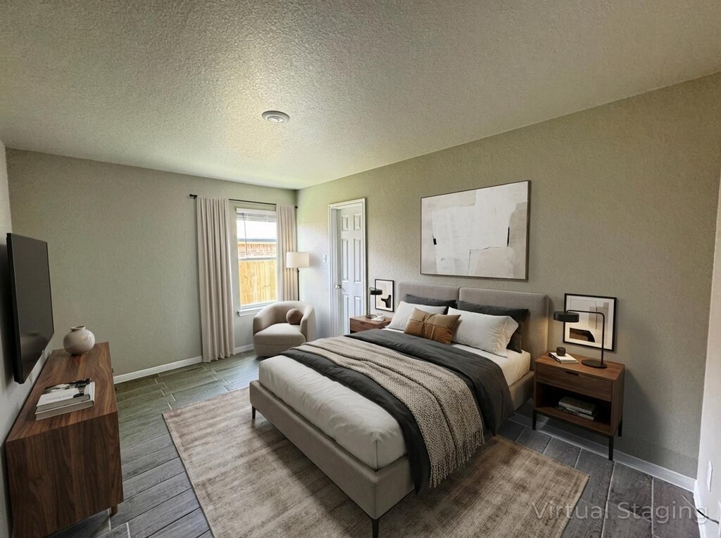 View 360° virtual tour: Experience this stunning newly built 3-bedroom, 2-bathroom duplex in Harker Heights, Texas. This home offers an all-stainless kitchen appliance package complete with refrigerator (not pictured), glasstop stove and microwave range, and dishwasher. The kitchen also includes a spacious pantry and opens up into a spacious living and dining space. Light charcoal tile flooring combined with soft neutral paint tones, rich wood cabinetry, marble-style countertops, nickel fixtures, and crisp white doors and trim make this home feel both modern and warmly inviting. The primary suite offers generous room, a spa-inspired bathroom, and a spacious closet for added convenience. Additional features include recessed LED lighting throughout, a large laundry room, ample storage and closet space, and a fully enclosed private backyard. Contact us or stop by our Killeen office to learn more — no appointment required to tour! Disclaimer: The furnishings or enhancements shown are AI-generated and intended for inspiration only. They may not reflect the actual scale, condition, or current features of the property.