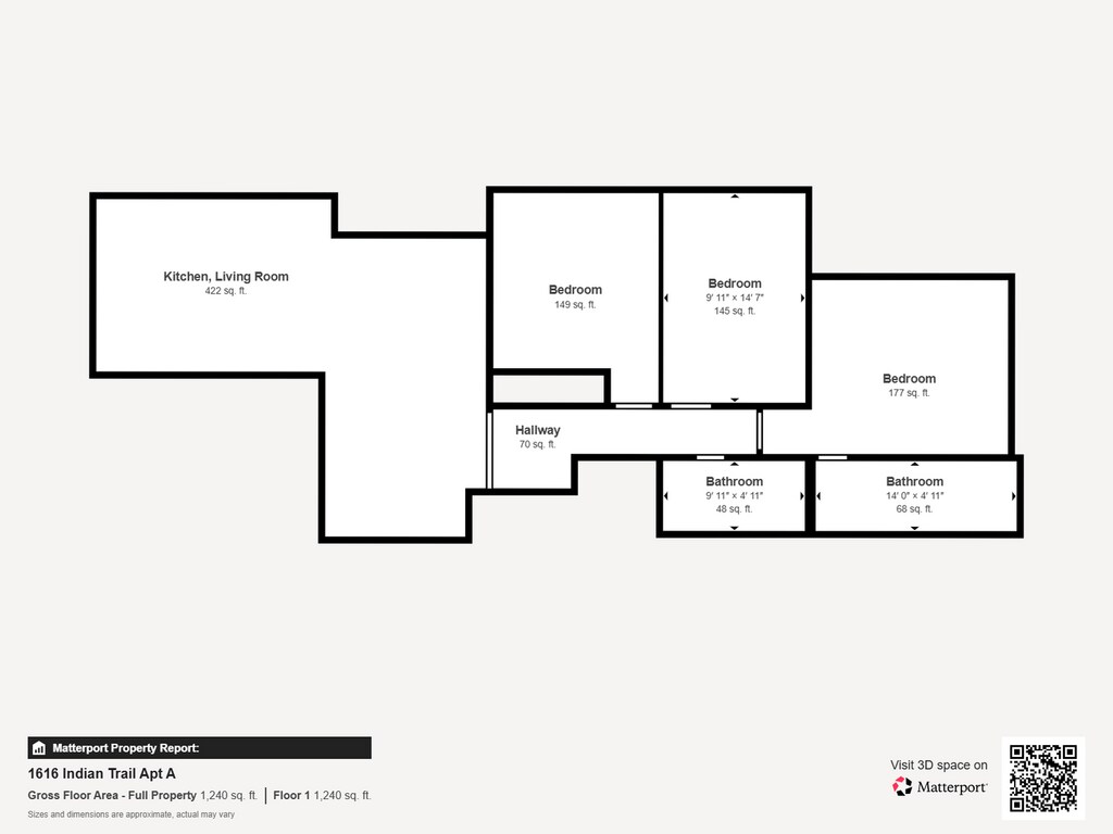 There is currently a 3 Bed 2 Bath Apartment for rent with 1,079 listed at 1616 Indian Trail. It is Available Now.
