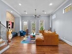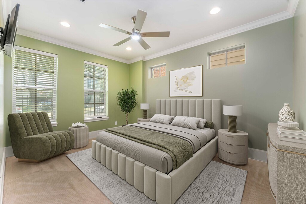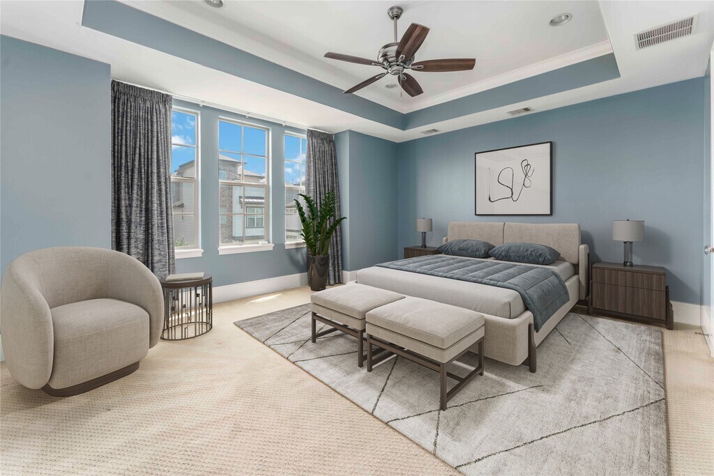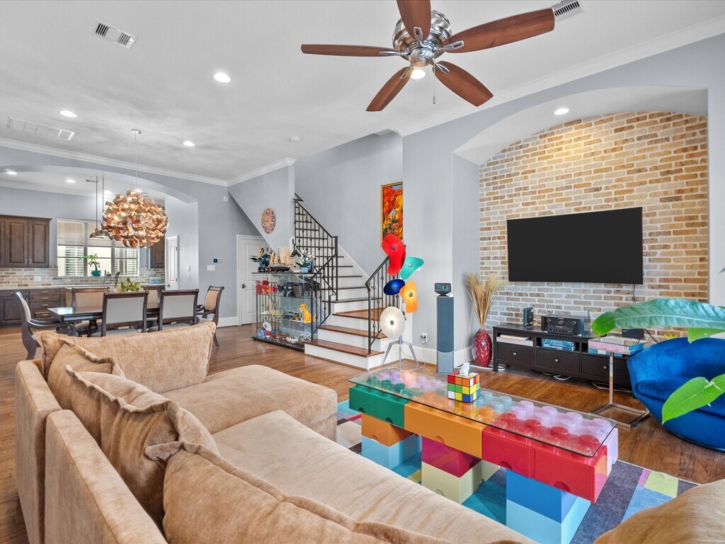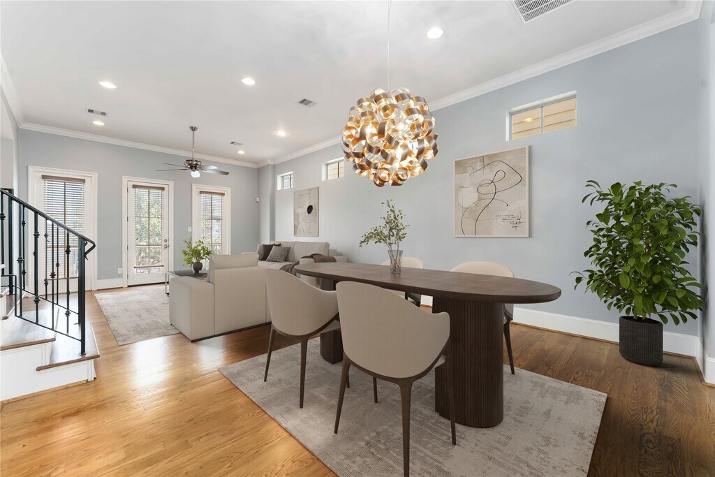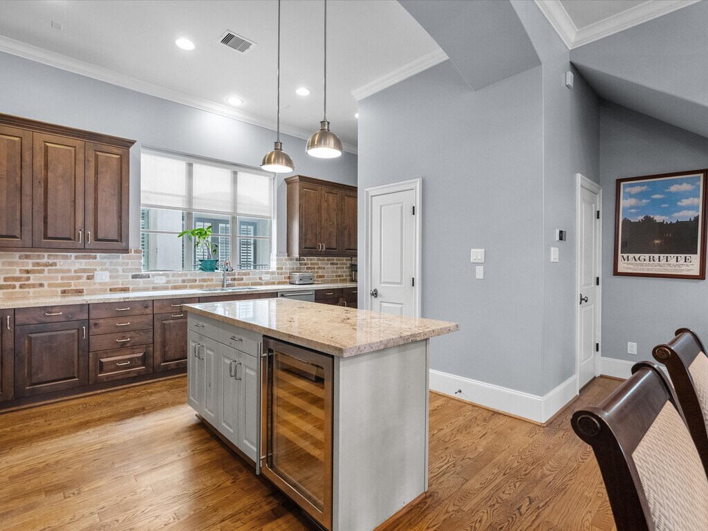 Experience urban sophistication in this freestanding 3-bed,3.5-bath brick and stucco home in Houston’s coveted Museum District. Enjoy a fenced backyard,rooftop deck,and stunning downtown views. The first floor features a private bedroom suite and access to the 2-car garage. The second floor boasts open-concept living,dining,and kitchen spaces with large windows,high ceilings,a balcony,beautiful brick detail in the dining area,granite counters,stainless appliances,and a central island with seating. The third-floor primary suite offers high ceilings,a spa-like bath with double sinks,a soaking tub,a large shower,and a walk-in closet,plus a guest suite and utility area. The rooftop deck on the fourth floor is perfect for relaxing or entertaining. Prime location close to museums,dining,and entertainment. MLS# 47648348