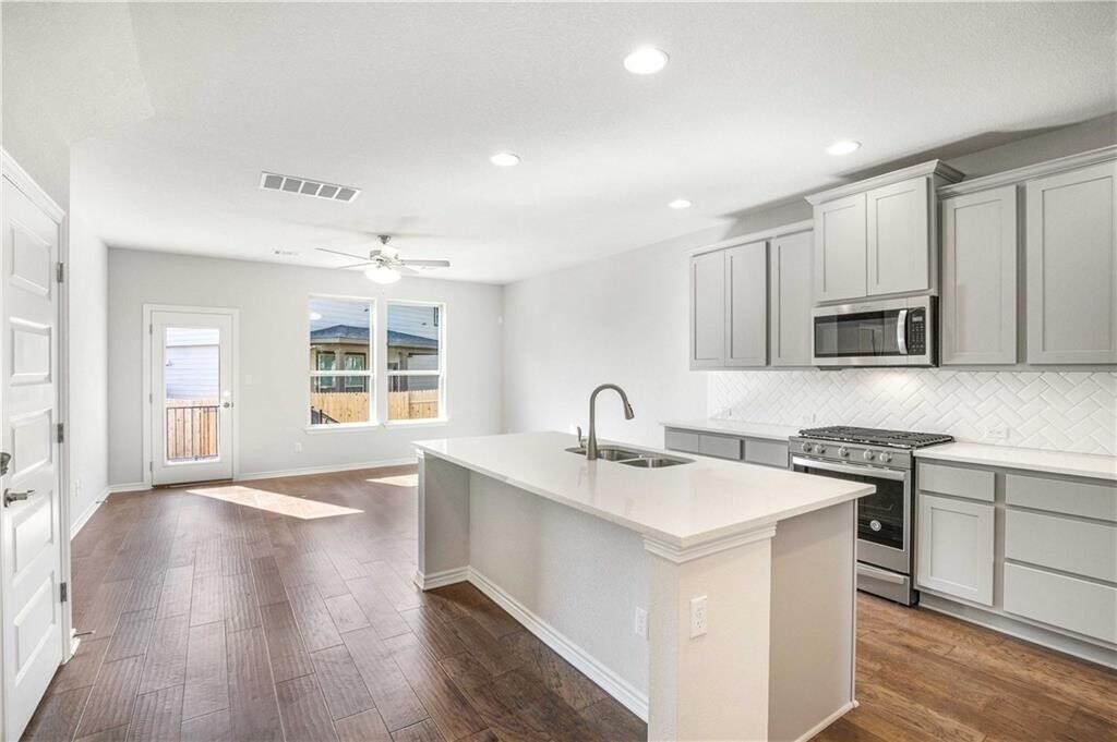 BEAUTIFUL HOME in the most sought-after Crystal Springs community with direct access & walking distance to the beautiful LAKEWOOD PARK where you can kayak, hike, bike, and spend all day! 15 minutes from the Apple campus, north Austin tech employers, and domain for shopping & entertainment. Excellent Leander ISD school district, community pool & playground. 1 Primary Suite on main level and 1 Primary Suite on upper level, total 4 beds + game room + 3.5 baths make this house an entertainer’s paradise. Fully upgraded house with engineered hard wood floors on main level (carpet upstairs), quartz countertops, smart home features, shaker cabinets, recessed lighting, and an elevated deck/patio for ultimate outdoor living. This house is ready to move-in with upgraded stainless-steel appliances including refrigerator and washer/dryer. Schedule your showing today, this home will not last long! Available February 1!