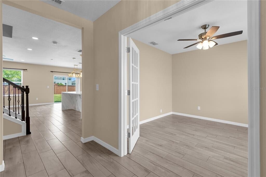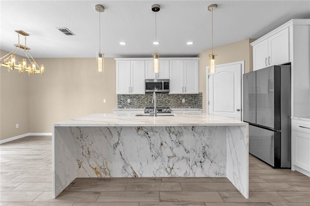 Stunning 5 bedroom 3 full bath room houses at SawGrass Bay with a lot of upgrade,NO CARPET in the house,wood like tile in first floor,gorgeous wood floor in second floor and bedrooms. New Kitchen cabinets with carrara quartz waterfall island. Fresh paint of whole houses. House with study room,first floor bedroom and a full bathroom,second floor master bedroom with upgraded bathroom,other 3 bedrooms,and an open game room. LED lights and ceiling fans in all areas. Long driveway,can park 4 cars,and huge backyard with a shed storage space. Water softner system. Rent includes lawn services. Sawgrass Bay HOA has nice community pool and playground MLS# O6387897