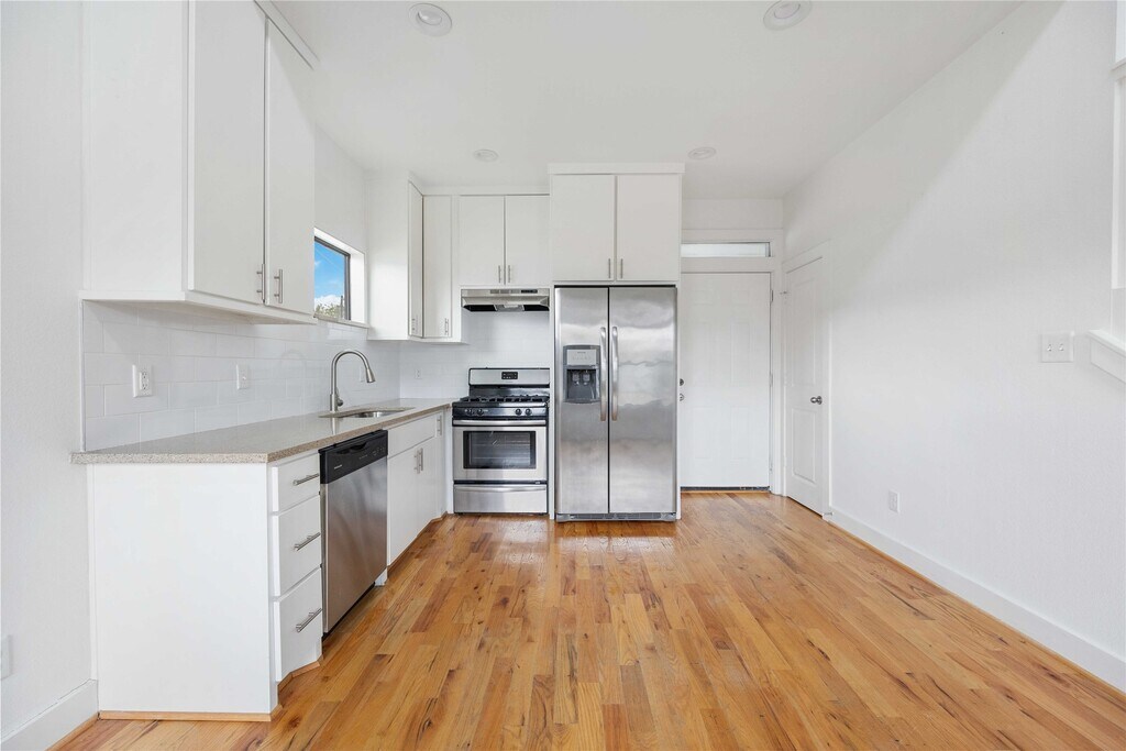 Modern & bright 1-bedroom/1-bath unit in a stylish 2-story duplex in the heart of Houston’s East End. This unique home features an open-concept layout with a custom loft,hardwood floors,granite countertops,walk-in closet,and central HVAC. In unit appliances included: refrigerator,dishwasher,washer,and dryer. Units are separated by two double-wide carports with a side entrance and parking for up to 4 cars. The first floor offers a refreshed kitchen open to the living area,while the second-floor loft is perfect for a home office or bonus living space. Unbeatable location just 5 minutes from Downtown,and close to EaDo’s top restaurants,bars,and coffee shops,plus quick access to I-45,I-69,and the Gulf Fwy for an easy commute. SCHEDULE YOUR SHOWING NOW — AT THIS PRICE,THIS ONE WILL GO FAST! MLS# 75885930