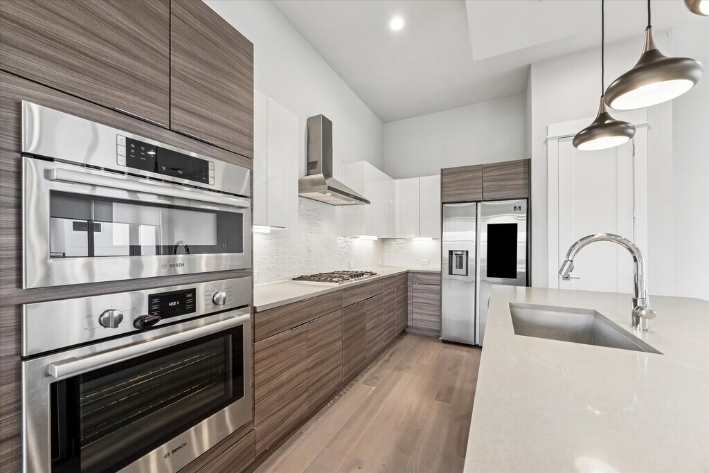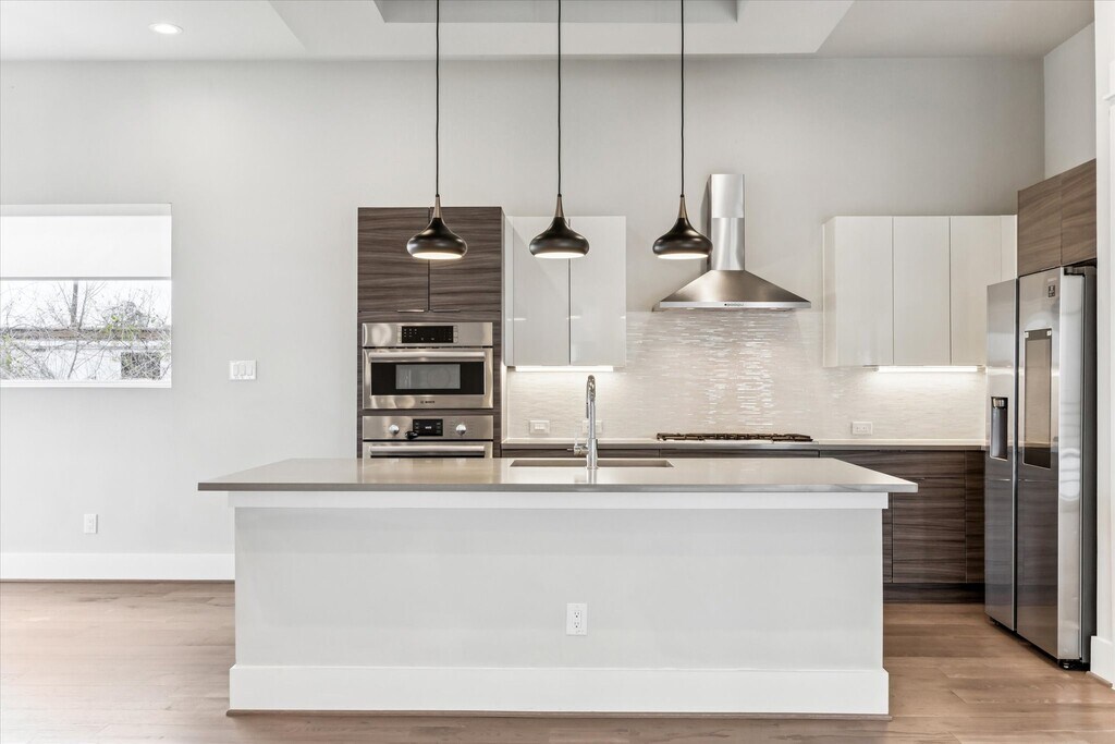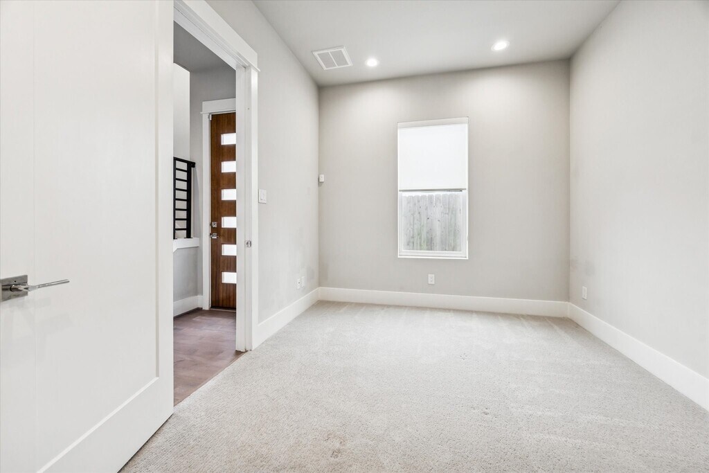 This end unit Museum District single family home in a gated community is in pristine condition and ready for move in! Located at the far end of the driveway,tenants can enjoy a private,gated side yard. The first floor includes a formal entry with closet,two car garage with a storage closet,bedroom with en-suite bath and side door access to the yard. On the second level is a spacious and open living area with a balcony,plus designer island kitchen (refrigerator included) and adjacent large dining space. Expansive windows mean wonderful natural light,also equipped with custom motorized shades. A half bath is tucked off the living area. On the third floor is a sanctuary of a primary suite with a dual vanity bath,tub and separate shower,as well as two walk-in closets. The third en-suite bedroom is also on the third level along with the utility closet (washer and dryer included). Both secondary bedrooms have walk-in closets. MLS# 25153192