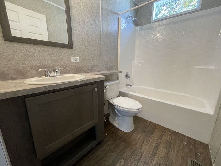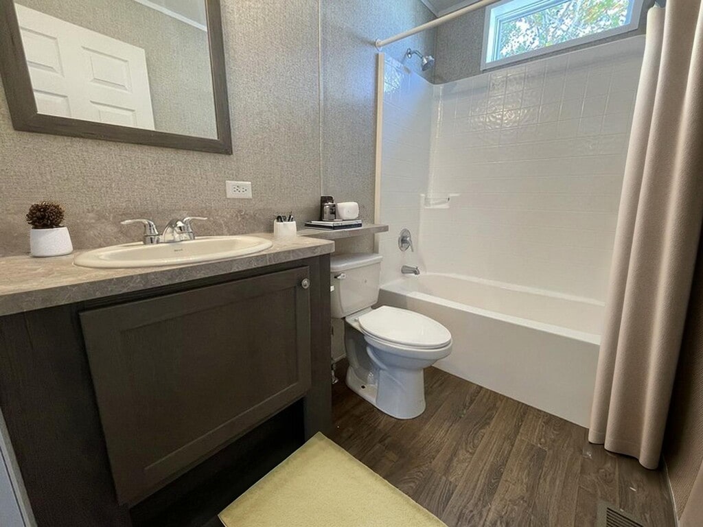 Fall is the perfect time for fresh beginnings! Apply by October 31, and you will receive three months of site rent waived after closing. This limited time offer is as sweet as a crisp autumn apple, so do not wait to make your move! This inviting two bedroom, two bathroom home blends cozy charm with modern convenience. The open layout fills with beautiful natural light, creating a warm and welcoming atmosphere throughout. The kitchen features a spacious island with seating, ideal for enjoying apple pie, cider, or good conversation. A dishwasher and microwave are included for easy everyday living. A separate laundry area sits just off the dining space for added convenience. The primary suite includes an ensuite bathroom with double sinks and built in shelving beside the shower, while the second bathroom is located near the secondary bedroom for comfort and privacy. Act now to make this bright, beautiful home yours before the month comes to a close!
