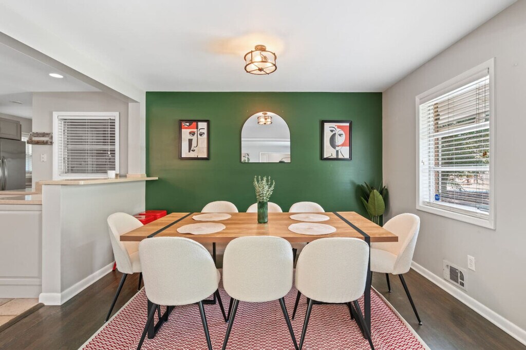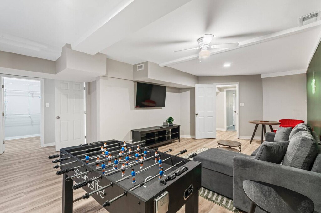 Welcome to your private retreat in Smyrna! Feel at home in this spacious 4-bedroom, 3-bath home situated on 1.5 acres of tree-lined property. Designed for gatherings big or small, this 3,000 sq ft retreat offers flexible sleeping arrangements, multiple living spaces, and a fully stocked kitchen with stainless appliances, cookware, and a coffee maker. Enjoy a game room with pool and foosball tables, a large dining area with an open layout, and a main living room with plush seating and a Smart TV. The fully fenced, tree-lined yard features a spacious deck, fire pit, and plenty of seating. Pet-friendly amenities are available, and up to 2 pets are allowed with notification before arrival. An additional cleaning fee per pet applies: $200 for 1–4 nights, $300 for 5–14 nights, $400 for 15–25 nights, and $450 for 25+ nights. Located just 10 minutes from Truist Park and The Battery Atlanta, this home is also conveniently located near State Farm Arena, Mercedes-Benz Stadium, Georgia World Congress Center, Georgia Aquarium, World of Coca-Cola, Centennial Olympic Park, and Zoo Atlanta. Explore Smyrna Market Village, Marietta Square, Mason Mill Park, and the Silver Comet Trail. Enjoy dining at Bacchanalia and casual eats at The Battery. Cats are not allowed. Smoking indoors is prohibited and will incur a $1000 fine. Parties or social gatherings are not allowed, and any group found to be deceitful will incur a $1000 surcharge. An undeclared guest surcharge of $100 per night will be applied for each unapproved guest. Evidence of unregistered pets will result in a $250 fine charged to guests. Quiet hours start at 10 pm on weekdays and 11 pm on weekends. A $50/hour penalty is applied if guests fail to check out by 10AM. Includes high-speed Wi-Fi and a dedicated workspace. [SI]