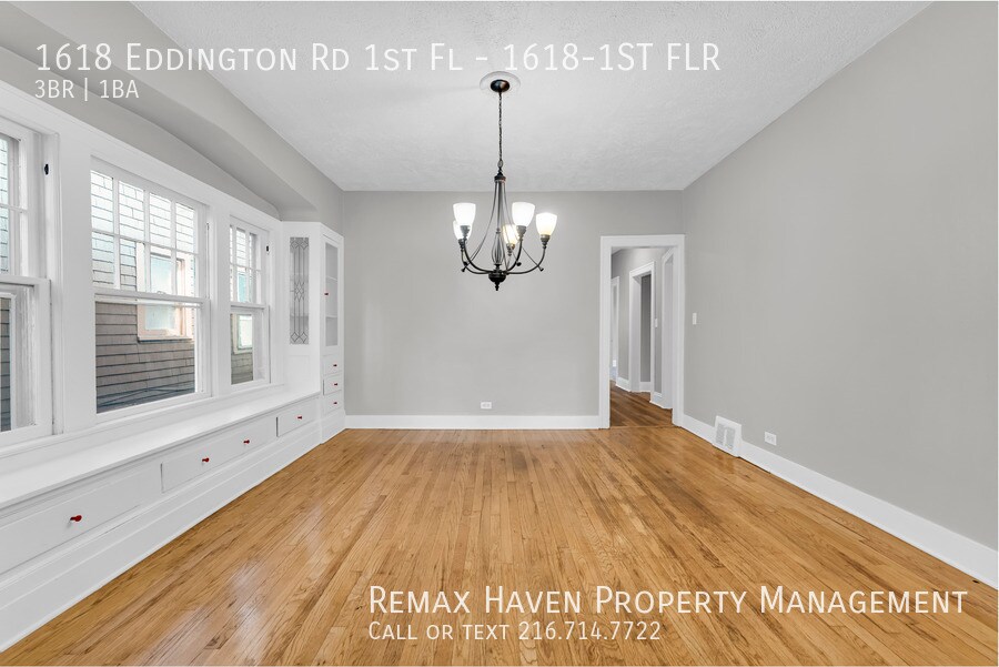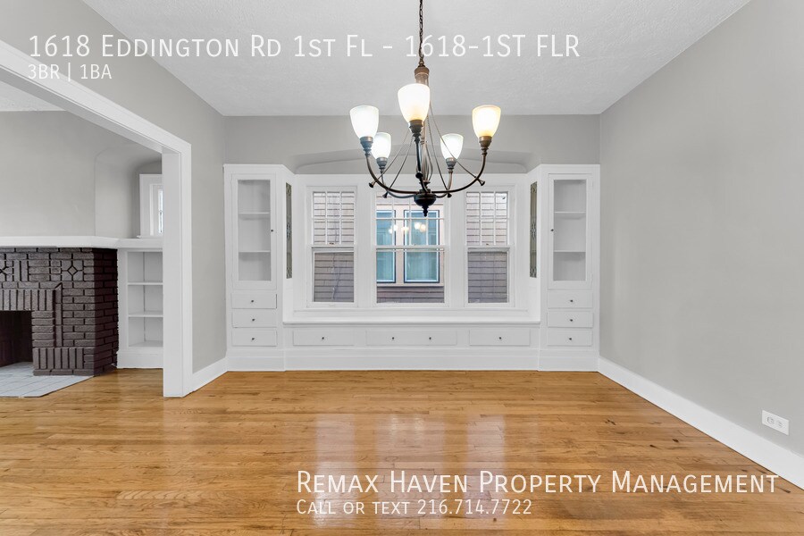 1618 Eddington Rd | DN (1st FLR), Cleveland Heights - Spacious 3-bed 1-bath multi-family home! Please utilize the ShowMojo online scheduler to fill out the prescreening questionnaire and to schedule your showing! $ 1300 rent / $ 1300 deposit $55 application fee per adult 1-2 pets OK in this unit. After application pre-approval, a PetScreening is required for any animals to proceed with one of our properties; a PetScreening affidavit is still required if you have no pets. (Some breed restrictions apply per HUD guidelines). NO SMOKING 1 time $169 non-refundable set up fee paid at lease signing $35/month required resident benefit package; can include personal property/liability insurance for an additional $10/month for $45/month total. ** ** CMHA OK - 3 bdrm voucher; must be prepared with reservation fee to hold the property and moving packet. ** ** After application Pre-Approval 1 applicant per household application is required to fill out a PetScreening application, found here: being about to proceed with placing a Reservation Fee for one of our properties. You will receive a pre-approval for your application and in order to proceed, the PetScreening is required. Even if you have NO pets - this application must be filled out. One time, non-refundable pet fee of $250-600 per animal applies to all pets & must be paid before or when you pay your first month rent. (No fee for qualified assistance animals). Our application is processed through secure site: Findigs, and they require ID and income verification. Without this, your application will not be processed. They offer 24/7 chat support on their application directly if you have any questions. BEDROOMS:3 BATHROOMS:1 APPLIANCES PROVIDED:Fridge and stove UTILITIES / RESIDENT RESPONSIBILITY:Resident pays gas and electric and is responsible for snow removal. Serious inquiries only. Thank you, Re/Max Haven PMD Fridge Pets Allowed Stove Views Washer/Dryer Hookups