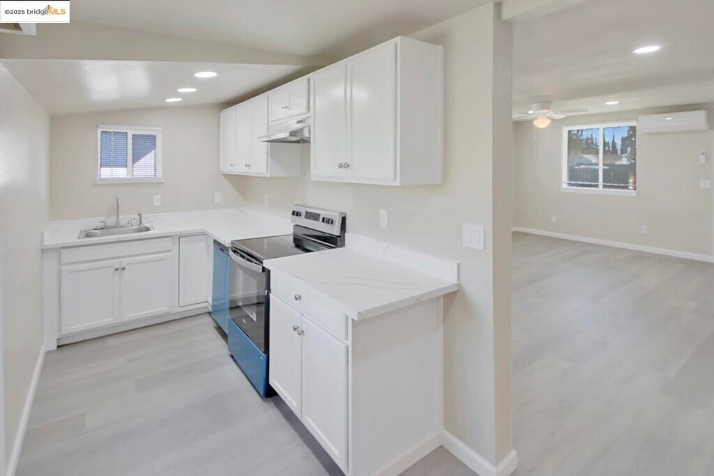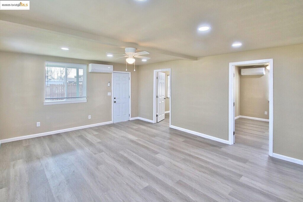 Gorgeous thoroughly remodeled 2 bedroom 1 bath home (finished in 2024). It’s like living in a brand new home with its large & open living room/kitchen area. The kitchen includes white cabinets,quartz counters,stainless steel appliances including refrigerator,dishwasher,electric range/oven! The bathroom has a large walk-in shower,new toilet,vanity,sink,mirror & more! Throughout the home,enjoy luxury vinyl plank flooring,2-tone paint,dual pane windows,localized ductless heating & air conditioning to control the temperatures in living room and each bedroom,LED canned lighting and ceiling fan/light fixtures! Indoor laundry hookups! Set back off the road for more privacy. Yard to play & entertain in. 2 designated parking spots + guest parking! Located conveniently close to eBART,Highway 4 & 160. Landlord pays most utilities (electricity,water & sewer) saving the tenant hundreds each month. Apply with RentSpree