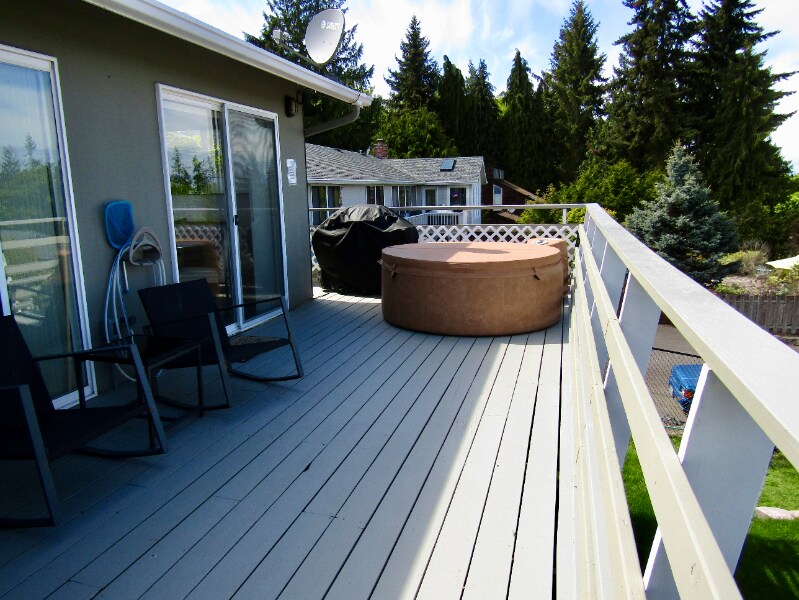 Property Id: 1261334 Only available Nov - April '26! Entire house, top floor · 3 bedrooms. The home is spacious and well laid out. Meals can be enjoyed in either the beautiful breakfast nook or at the larger dining table. Just off the kitchen and dining areas are sliding doors that lead to the wraparound deck, and a propane grill. The Master suite has a beautiful water view and a queen bed with memory foam mattress. A smart TV is also provided. The ensuite master bath has a beautiful granite tiled dual head rain shower. Both the second and third bedrooms also boast comfy queen beds with memory foam mattresses. A second full bath showcases a combination tub/shower with both a rainfall shower head and a luxurious jetted soaking tub. A washer and dryer are located in the home off the kitchen for your use during your stay. Guests have access to strong wireless internet, washer/dryer, personal desk space with printer and the hot tub on the deck.