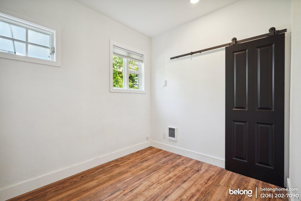 Situated between Cap Hill, Downtown, and the Central District, this beautifully renovated duplex unit epitomizes modern urban living. Hardwood floors stretch across the open-concept living area, complemented by large windows that bathe the space in natural light. Blinds on each window ensure you can control privacy and light levels to suit your needs. The well-appointed kitchen features a refrigerator, dishwasher, and a 4-burner electric range with oven and vented hood. A large center table here functions as extra workspace as well as a dining area, comfortably seating six—a perfect spot for preparing meals or hosting friends. Barn doors add a rustic touch to the modern aesthetic in all three bedrooms. The full bathroom is both functional and stylish, while the in-unit laundry with a stacked washer and dryer adds a layer of convenience. Additional amenities include a radiant heater and a shared water heater, ensuring comfort and efficiency throughout the year. At the back, a small deck provides a cozy outdoor retreat. The prime location offers unparalleled convenience, with hospitals, shopping centers, grocery stores, parks, and entertainment venues just a short walk away. Proximity to schools and various public transportation options—buses, trams, and trains—makes commuting to SeaTac Airport, downtown, the University District, and beyond a breeze. This home is perfect for those who seek a blend of contemporary living and easy access to the best of what the city offers.