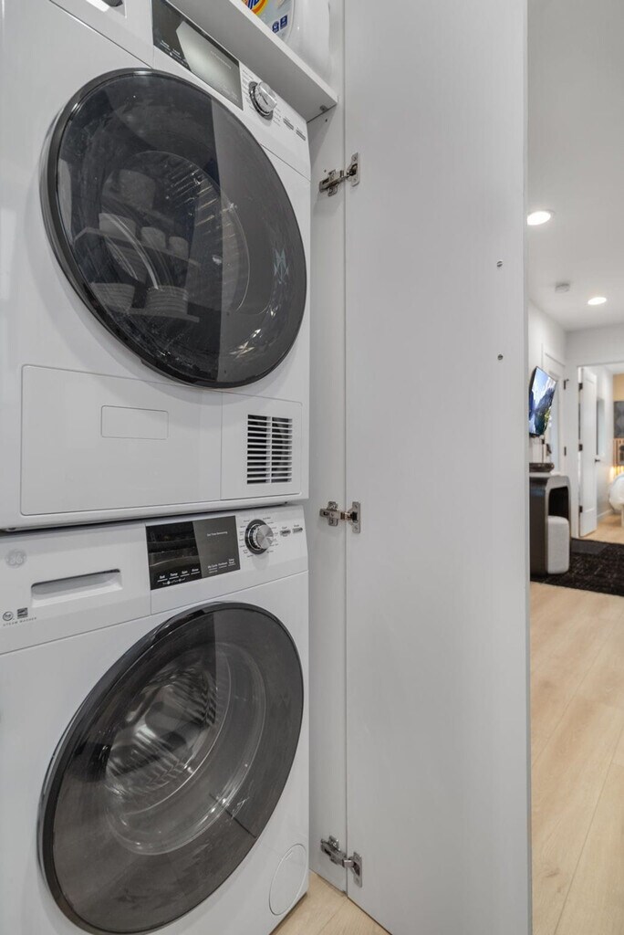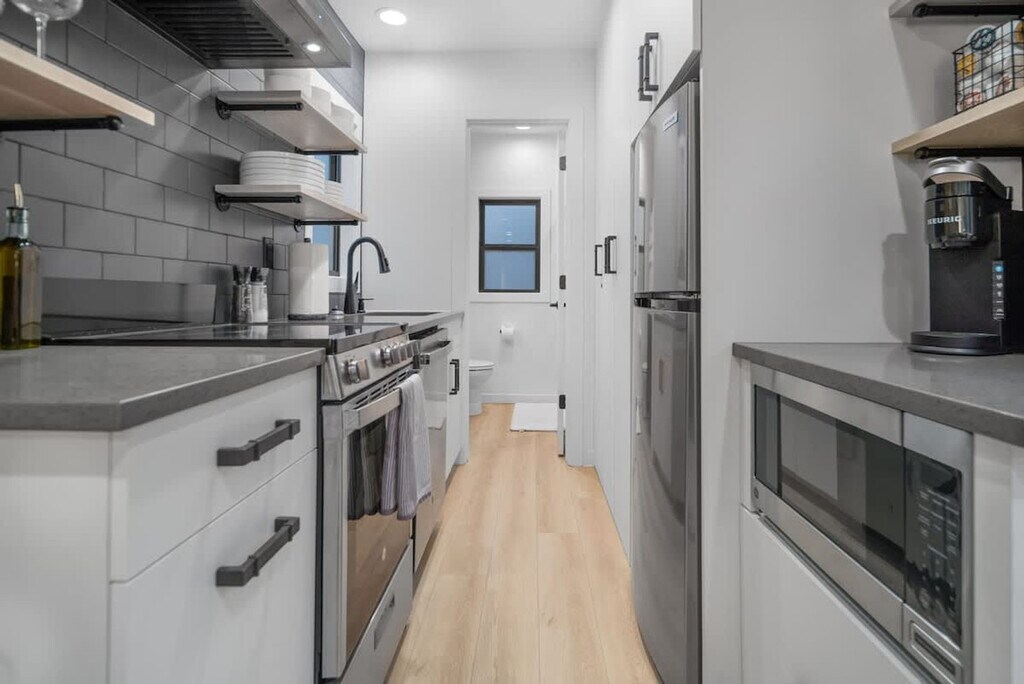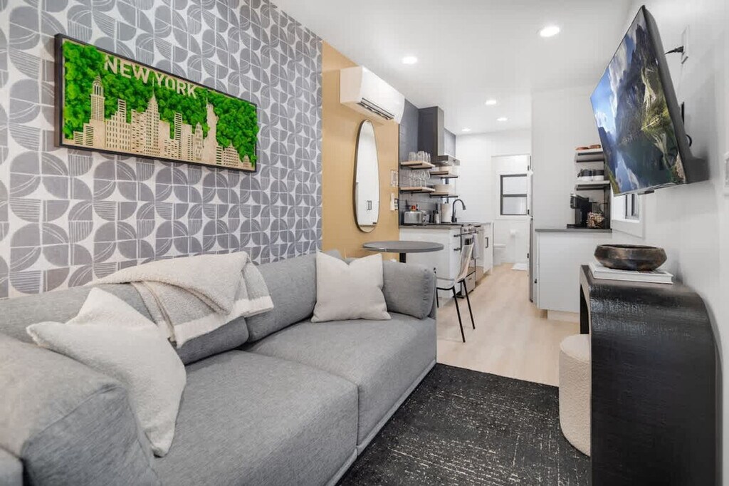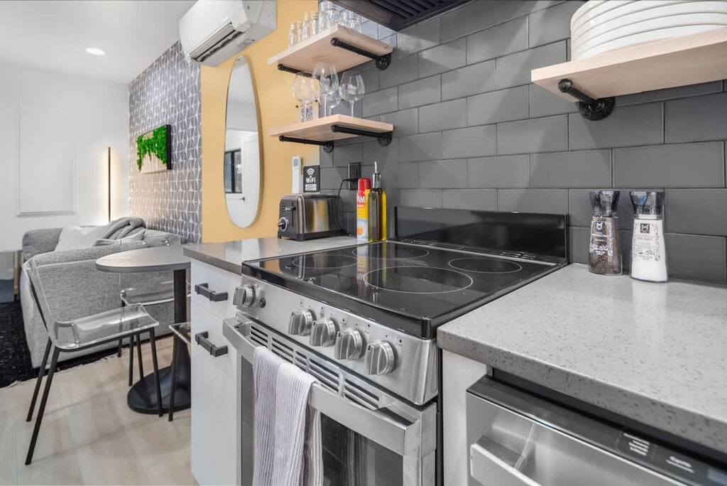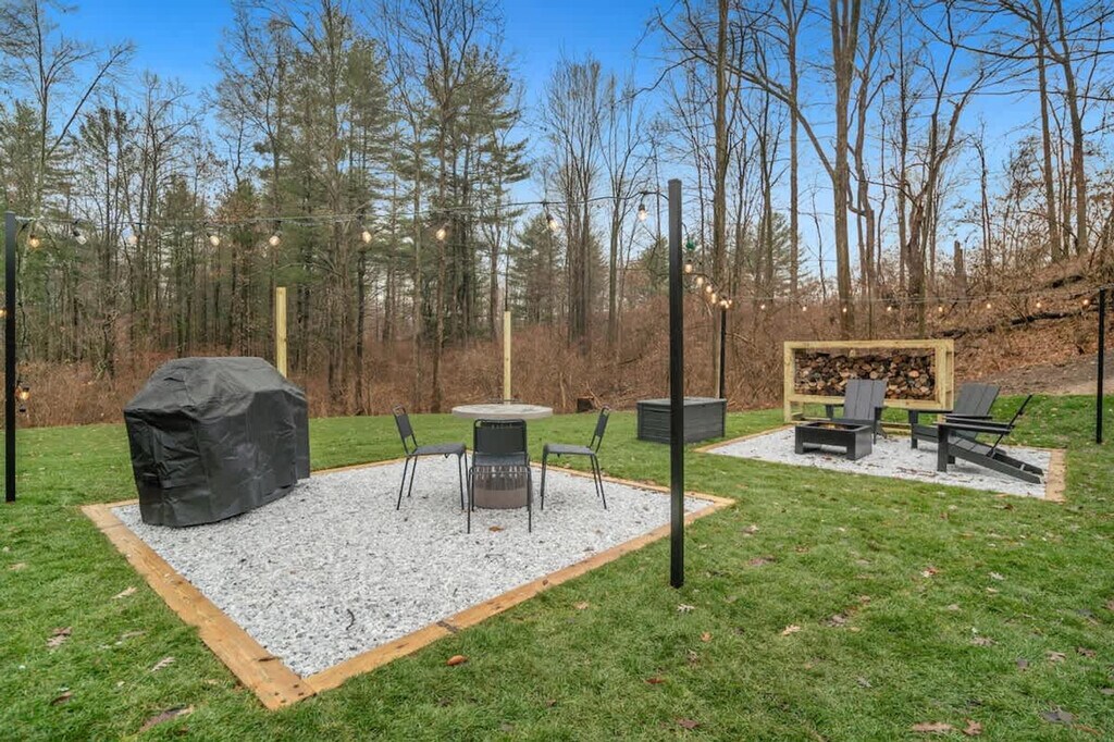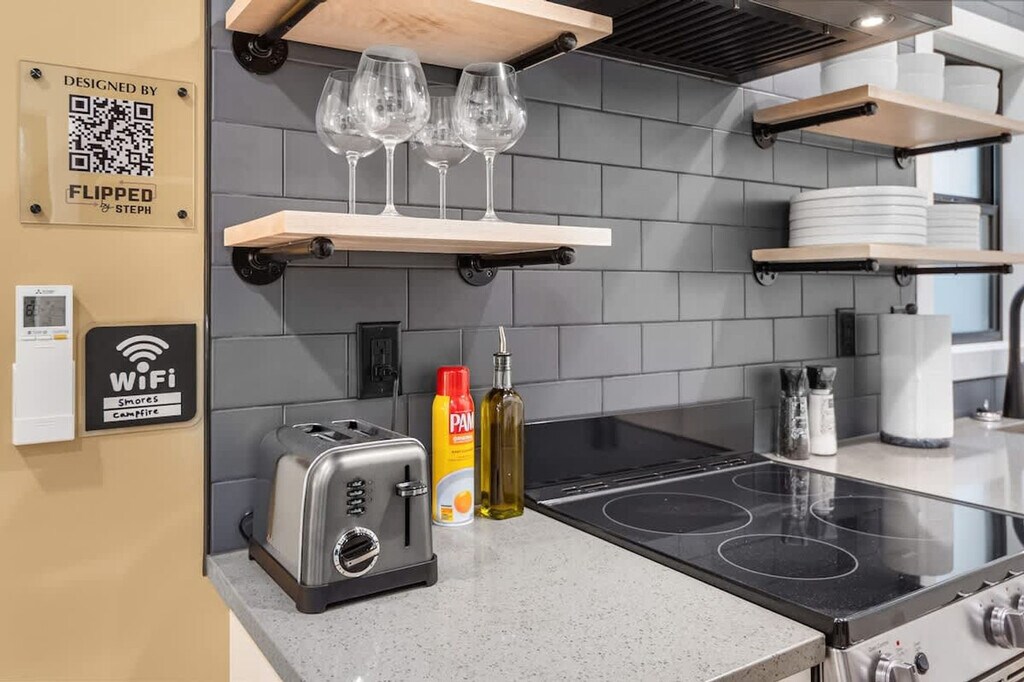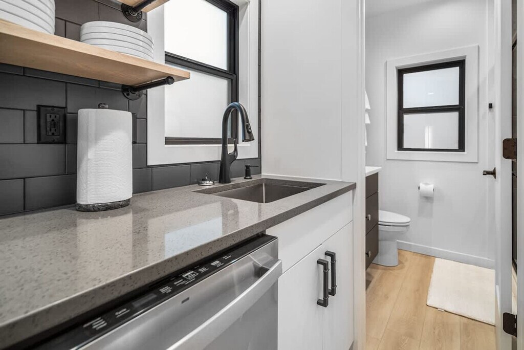 Experience tiny home living without giving up any modern amenities in this shipping container home. Feel at home in this industrial meets rural tiny home. This 40' shipping container was transformed into a luxury tiny home. The full kitchen includes a stove, oven, microwave, fridge/freezer, and dishwasher, as well as a washing machine and dryer. The bathroom has a walk-in shower. The bedroom has a comfortable queen-size bed and blackout shades. The living space has a couch, table for three, and Roku TV. Fast Starlink Wi-Fi covers the home. A Level 2 EV charger is available for your use. Well-behaved dogs are welcome when added to the reservation. The home is located 15 minutes from downtown Ithaca, 17 minutes from Cornell, and 14 minutes from Ithaca College. Outside, enjoy a private yard with a fire pit (firewood and starter included with your stay), hammock, BBQ, and eating area. The 900' driveway is on a hill, and while snow and ice are managed around the clock, a winter-capable vehicle is highly recommended. Quiet hours are between 10:00 PM and 7:00 AM. Cats and other pets are not allowed.