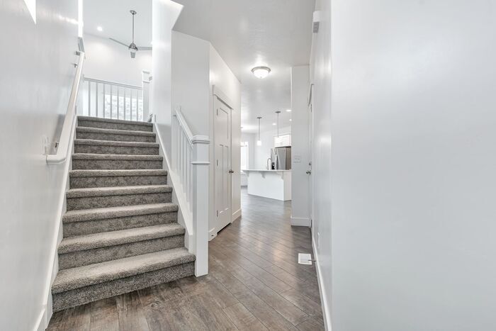 Highlight Features: • Row End Townhouse • Attached two car garage • 4 Good sized bedrooms • 3.5 bathrooms (convenient guest bathroom) • Upgraded finishes, stainless appliances • Kitchen has upgraded gas range, OTR Microwave, Stainless 2 door fridge w water dispenser • Separate pantry • Dining Area • Clean white Craftsman cabinetry • Quartz countertops all round! • Beautiful LVP Flooring • Feature stair case • Lots of natural light • Master Suite has en suite bathroom with walk in closet, double vanities + feature shower • Separate Laundry with washer + Dryer included • Central Air/Forced Air Heating • Plenty of storage • Finished basement • Great Floor plan • Located in the sought after Bringhurst Station property • Located just off of Redwood Road • Easy commuting to Salt Lake and Utah County. • Mountain View Village located only minutes away, shopping and dining opportunities. Amenities: • Clubhouse • Pool • Playgrounds • Trail system 4 Bedroom • 3.5 Bathroom • 2,332 Sq Ft (per county records) provided as a guide only, recommend independent measurement. Monthly Rent: $2,300 Security Deposit: $2,300 OAC Parking: 2 Car Garage Appliances: Dishwasher, Refrigerator, Range/Oven, Microwave, Washer & Dryer Utilities: Tenants pay gas and electricity directly to the providers. Monthly reimbursements to the owner $81.00 Water, Sewer & Trash $6.00 Utility Admin Fee NO PETS NO SMOKING OR VAPING To schedule a showing please give us a call at . Visit our website below where you can also view all of our available rental properties. ***Square footage figures are provided as a courtesy estimate only and were obtained from information available to RESE*** RESE Property Management is an equal opportunity housing provider. The Amounts of rents, fees, and other expenses may vary daily. Units may or may not be available. The information contained on this page was accurate as of the date it was posted but may have changed. Nothing here is an offer nor a promise that the amounts stated have or will remain. Interested applicants should contact the management to find the most current costs, fees, and availability of units. IMPORTANT: RESE WILL NEVER ASK YOU TO PAY ANY DEPOSIT UNTIL AFTER YOUR LEASE HAS BEEN SIGNED! Contact us to schedule a showing.