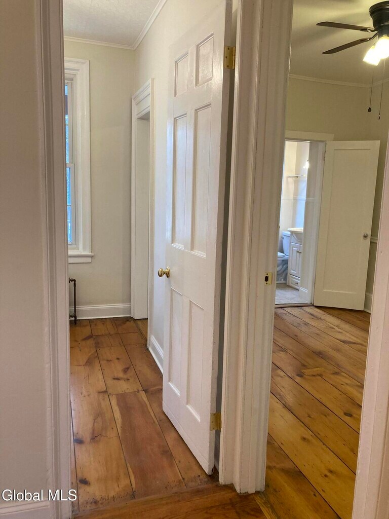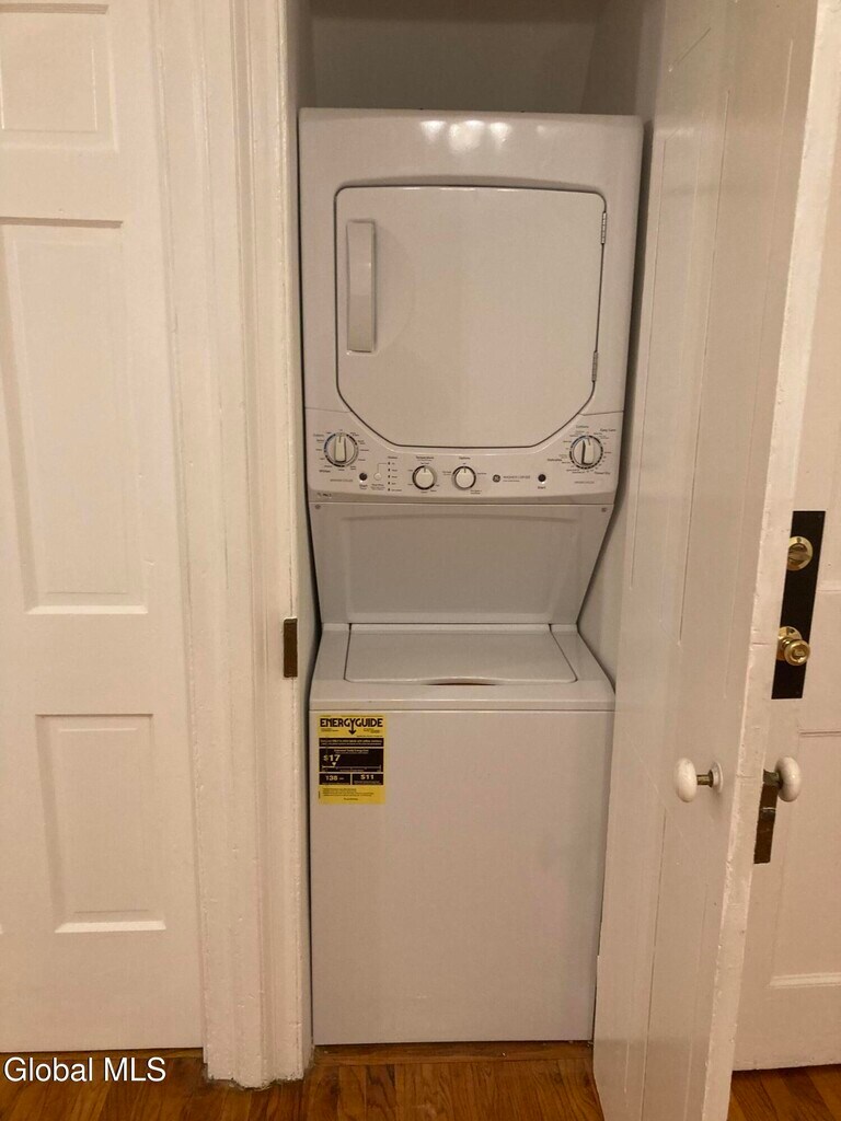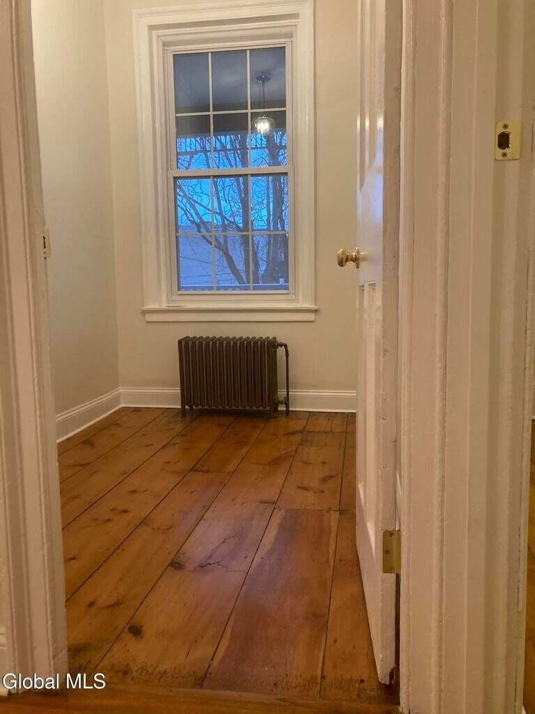 1809 Federal Style Townhouse fully renovated,but still lots of original character and extremely well maintained. Steps to everything Downtown Troy has to offer: cafes,restaurants and shopping! This beautiful second floor apartment has a spacious living room,a newly renovated kitchen with dining area,2 bedrooms,and updated bathroom. It also has a lovely private balcony with a spiral staircase leading down to the owner's beautiful gardens. Looking for someone to make this their home! Washer/dryer in unit. Utilities are included. Available February 1 History of the home: Located in the Historic Pottery District,it was the home of the Master Potter Israel Seymour. The Historic Troy Pork Store that is next door,used to be where Israel sold his famous pottery and is now home to La Capital Tacos.