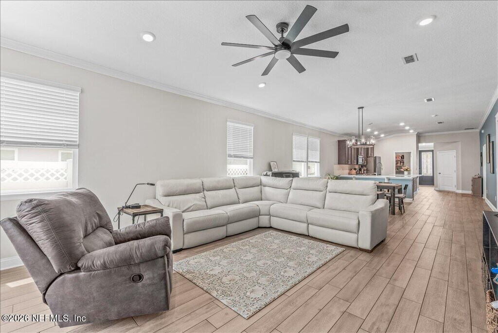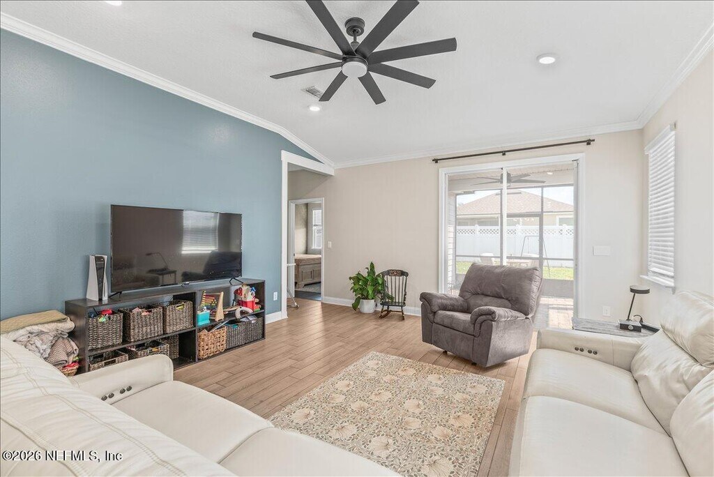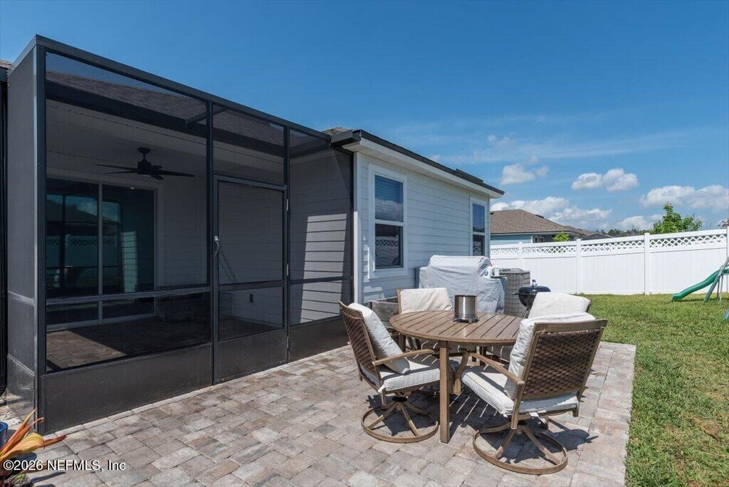 Welcome to this beautifully maintained,young home,nestled in a vibrant and walkable community in St. Johns County. This move-in-ready gem offers the perfect blend of comfort and convenience,just steps away from local shops,restaurants,and everyday amenities. Inside,you'll find a spacious layout filled with natural light and modern finishes throughout. The home features a screened-in patio and an extended,paved outdoor space,perfect for relaxing or entertaining. The FULLY FENCED yard adds privacy and is ideal for pets or play. Additional highlights include a finished garage floor,a WATER SOFTENER system for added comfort,and thoughtful touches that make daily living a breeze. Community offers RESORT STYLE AMENITIES; neighborhood parks,resort-style pools,tennis and pickleball courts,dog parks,& miles of walking & biking trails,all set amidst over 4,350 acres of natural preserves. Don't miss your chance to live in a home that truly has it all. Available July 1. MLS# 2140667