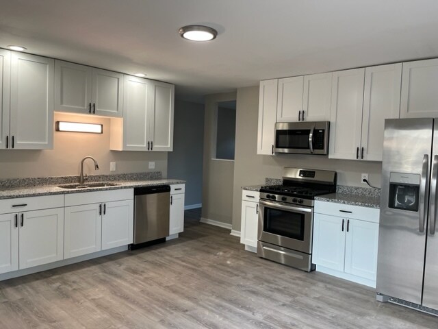 Four bedroom one bath ranch available for rent. Home was just rehabbed with new flooring, paint, lighting, exterior doors and windows throughout. Bathroom remodeled with all new fixtures and lighting and includes a linen closet for extra storage. Brand new eat in kitchen with new white shaker cabinets, granite countertops and stainless steel appliances. Just off the kitchen is a hookup ready laundry room. A new sliding door off the kitchen allows you direct access to the backyard and a wooden deck. Primary bedroom has a large walk in closet. One car garage plus additional parking pad off the driveway. Sorry no pets allowed. No smoking of any kind allowed inside property.