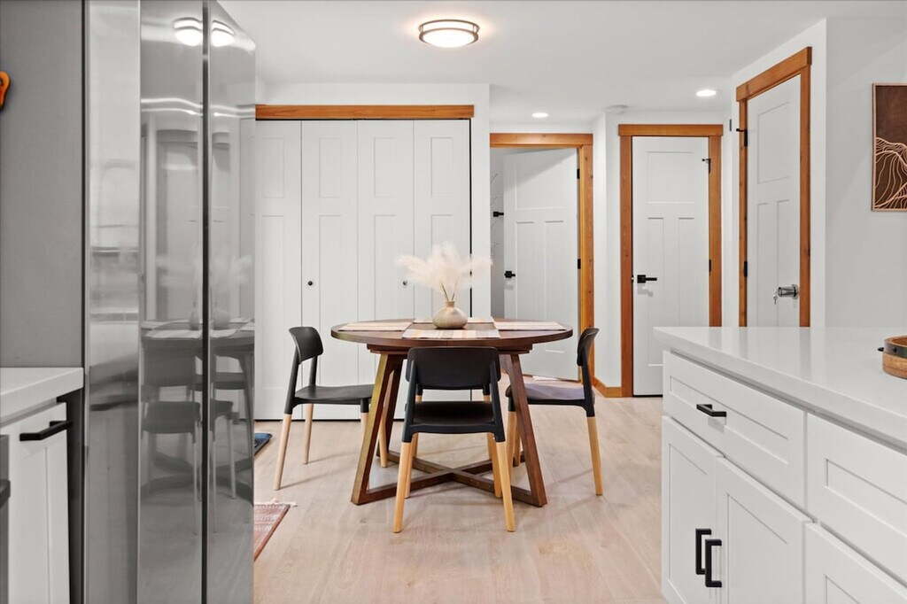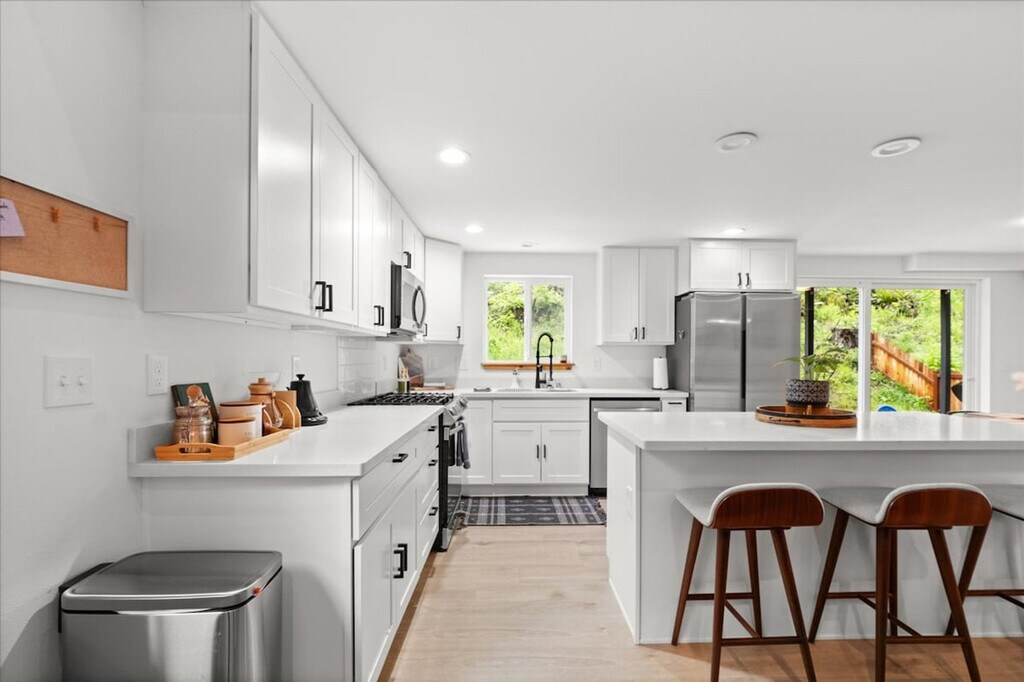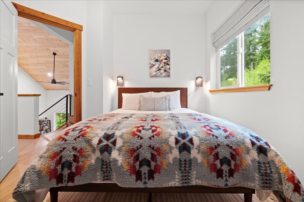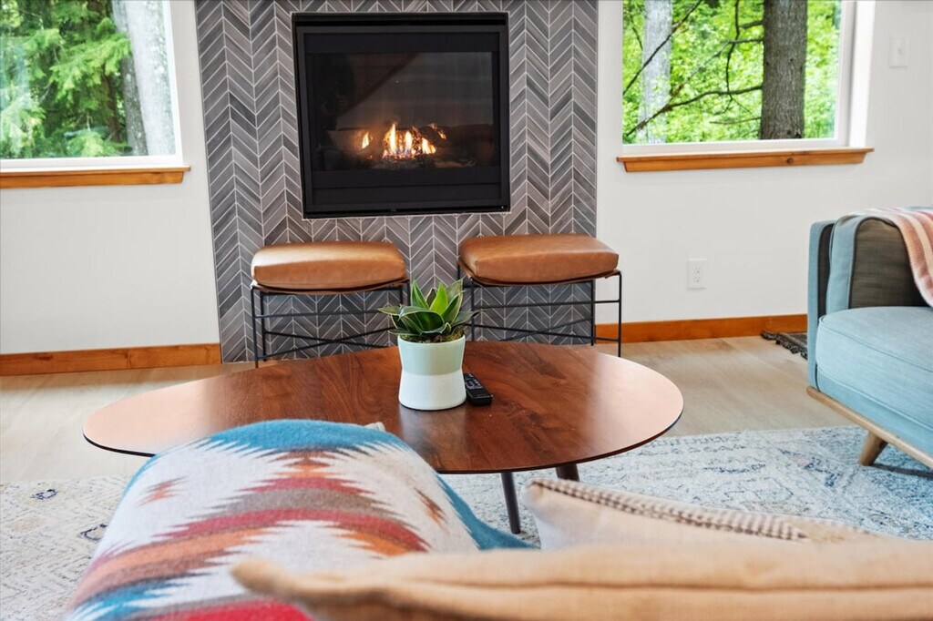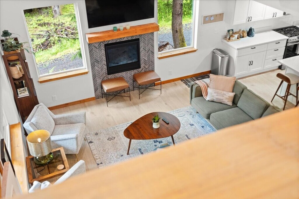 Experience the tranquility of the countryside in this new 3-bedroom, 2-bathroom home, offering 1,488 sqft of living space. Feel at home in this two-level home, with a few steps to the entrance door. This spacious retreat features a backyard equipped with a BBQ grill, fire pit, and hot tub, perfect for relaxing after a day of adventure. The fully stocked kitchen includes a coffee maker, dinnerware, silverware, drinkware, cookware, and servingware. Enjoy the convenience of an on-site washer and dryer, a mini-split for cooling on the main floor, a fireplace, smart TV, and internet for streaming. There is also a front porch and covered backyard deck for year-round outdoor relaxation. Well-trained pets are welcome at $50 per pet per night. Located just 8 minutes from the entrance to Mt. Rainier National Park, this home provides access to excellent hiking trails and diverse outdoor activities. Paradise Estates is a mix of full-time residents, vacation homes, and other rental properties in a private community approximately 5 miles from the Nisqually entrance of Mt. Rainier National Park. The cabin is accessed by fully maintained roads all year round and is only accessible by car. Four-wheel drive is recommended in the winter. Parties and events are strictly prohibited, quiet hours are between 10pm and 8am, smoking or vaping of any kind is prohibited anywhere on the property including outdoor areas, digital piracy is prohibited, and shoes are not allowed in the home. There is a $500 fine per violation. The use of the fire pit and charcoal grill are prohibited during burn bans. [SI]