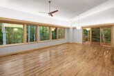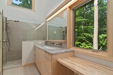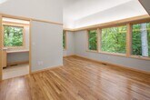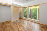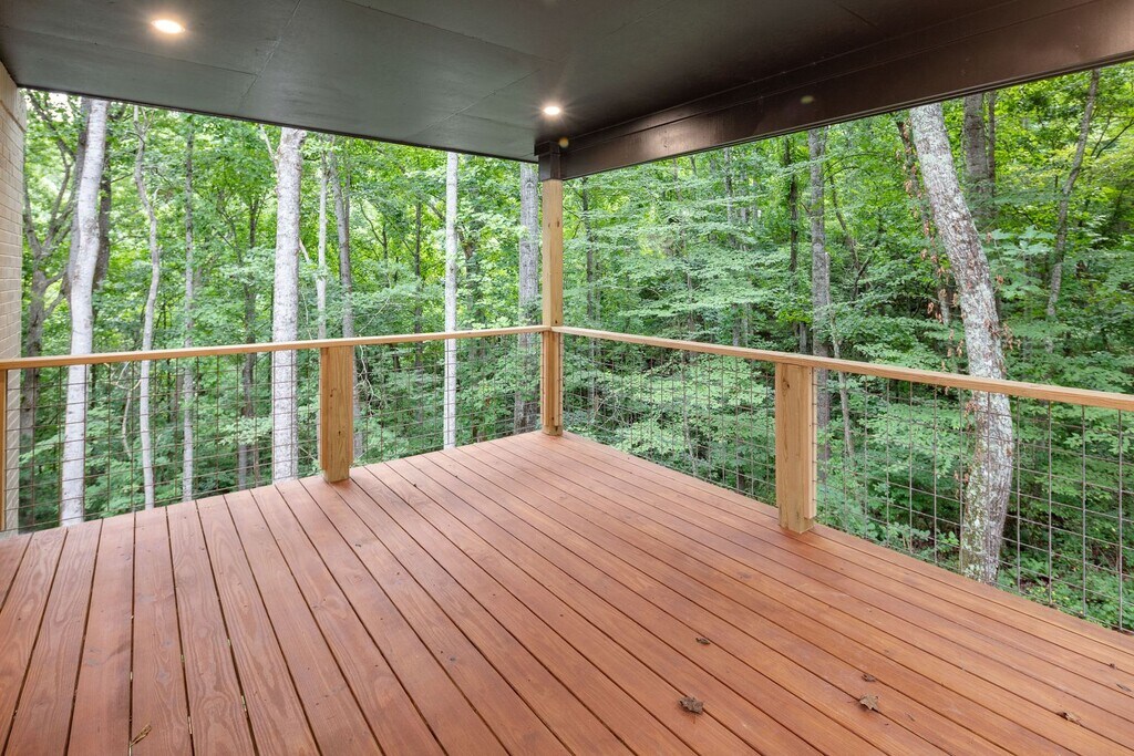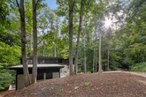 Gorgeous newer home (2022) in a wooded neighborhood setting. Abundant casement windows offer peaceful wooded views from nearly every room. Clean modern lines and sleek fixtures pair beautifully with large windows, hardwood floors, and natural wood trim. Clever lighting design throughout includes ambient cove lighting, recessed ceiling lights, and task lighting. This smart floorpan includes a main floor primary suite, attached garage, and open plan living, with the den, guest bedrooms, and bonus room on the lower level. The great room features a charming wood burning fireplace, built-in cabinetry, and the beautiful open kitchen. The kitchen has granite counters including a breakfast bar, open shelving, under-cabinet lights, and a spacious pantry with a pocket door. Appliances include the French door refrigerator, dishwasher, five-burner gas cooktop, built-in microwave, and wall oven. The main floor primary bedroom includes a walk-in closet with extensive shelving and an en suite bathroom with a walk-in shower, large single-sink/double-faucet vanity, and w/c with linen storage. Other main floor spaces include the powder room inside the front entry, the two-car attached garage, the mudroom/laundry room located between the garage and foyer, and a lovely covered porch off of the dining area. The mudroom includes built-in storage, and the washer and dryer are included. Downstairs, find the den, two bedrooms, the second full bathroom, and a bonus room. The spacious den has an exterior door to a small patio plus a large attached bonus space, perfect for storage or a distraction-free office. Bedrooms two and three have good closet space with shelving. The hall bathroom includes a large vanity with plenty of storage and a shower/bathtub with attractive tile surround. There’s a linen closet off of the lower level hall. The bonus room is bedroom-size but does not include a closet. This room has an exterior door to a small patio partially covered by the main level porch. Central zoned heat and air conditioning, all electric. Ceiling fans throughout. Tenant responsible for landscape maintenance/ weeding. Well water and on-site septic; tenant responsible for all other utilities, including propane gas for the cooktop, electricity, and trash collection. No pets. No smoking. No cosigners.