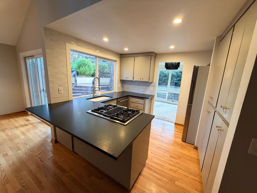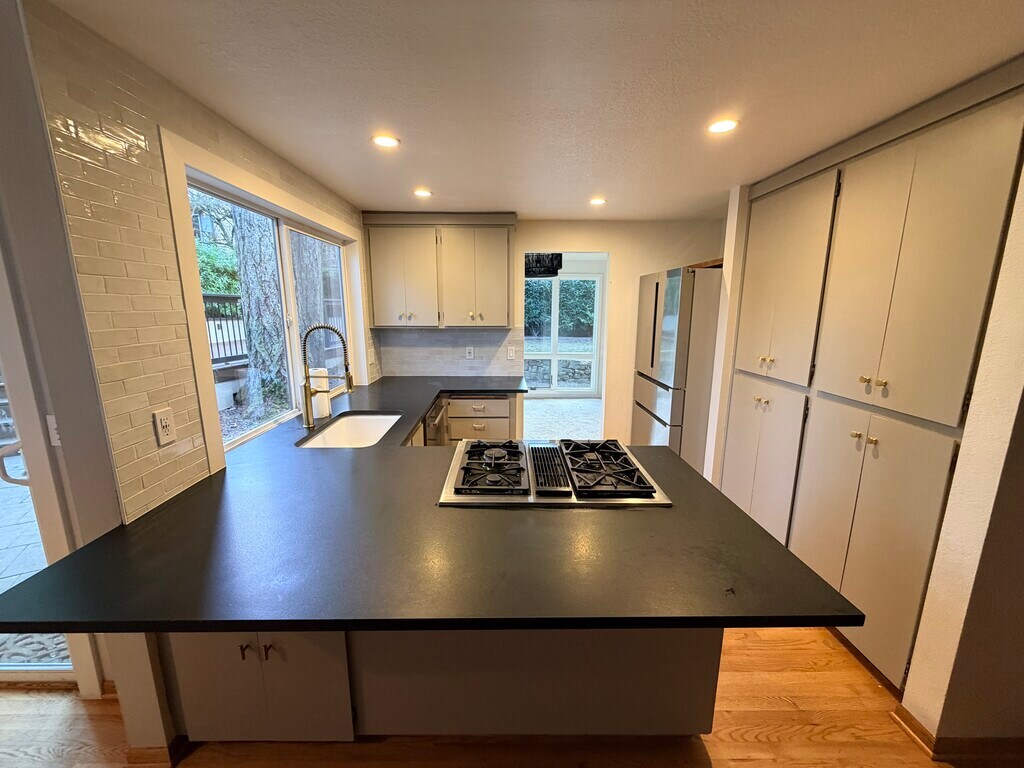 Beautifully updated 3-bedroom, 2-bath home in the heart of Lake Oswego at the end of a cul de sac, offering comfort, functionality, and easy indoor-outdoor living. This light-filled home features two newly renovated bathrooms with clean, modern finishes, along with a thoughtfully updated kitchen that blends style and practicality for everyday living and entertaining. The layout is comfortable and livable, with well-proportioned rooms and a natural flow throughout. One of the standout features is the gorgeous backyard, designed to be both easy to maintain and ideal for hosting. Whether you're enjoying a quiet morning outside, grilling with friends, or gathering for dinner, the outdoor space feels private, usable, and welcoming year-round. The yard is fully fenced in. Additionally, there is 220v power in the garage for electric car charging. Located on a quiet street while still close to Lake Oswego's schools, shops, dining, and parks, this home offers a great balance of neighborhood charm and convenience. A wonderful option for renters looking for a well-cared-for home with modern updates and a beautiful outdoor space.