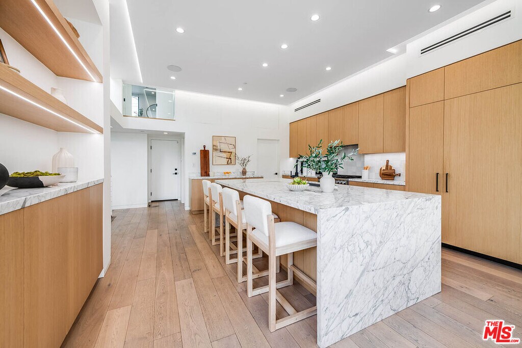Stunning newer construction Contemporary in prime Venice, steps to Abbot Kinney. This property is available for sale and for lease. The 5 bedroom, 6 bath home exudes impeccable style and quality. The lower level features a state of art theater with 110 inch screen, 500+ bottle wine cellar and game room. The main level presents an open floor plan with wide plank oak floors, gourmet chefs kitchen with beautiful large waterfall island, marble countertops, custom cabinetry, and telescoping glass doors that open to the yard and sparkling pool. 5 bedrooms and bathrooms are on the upper levels. Private yard, perfect for entertaining. MLS# 26651537