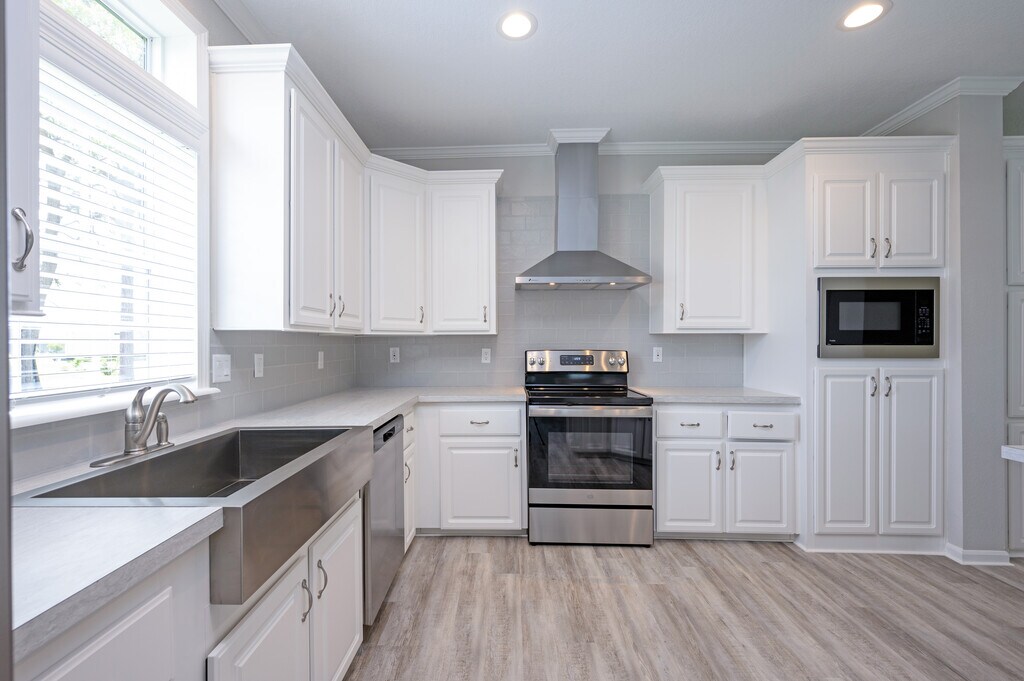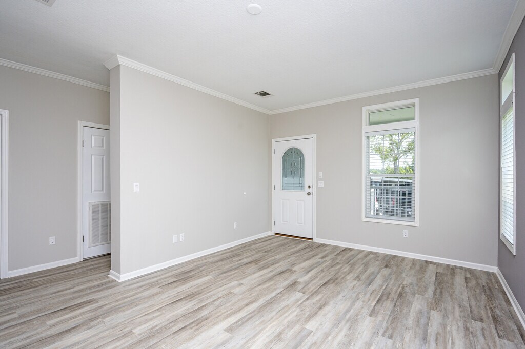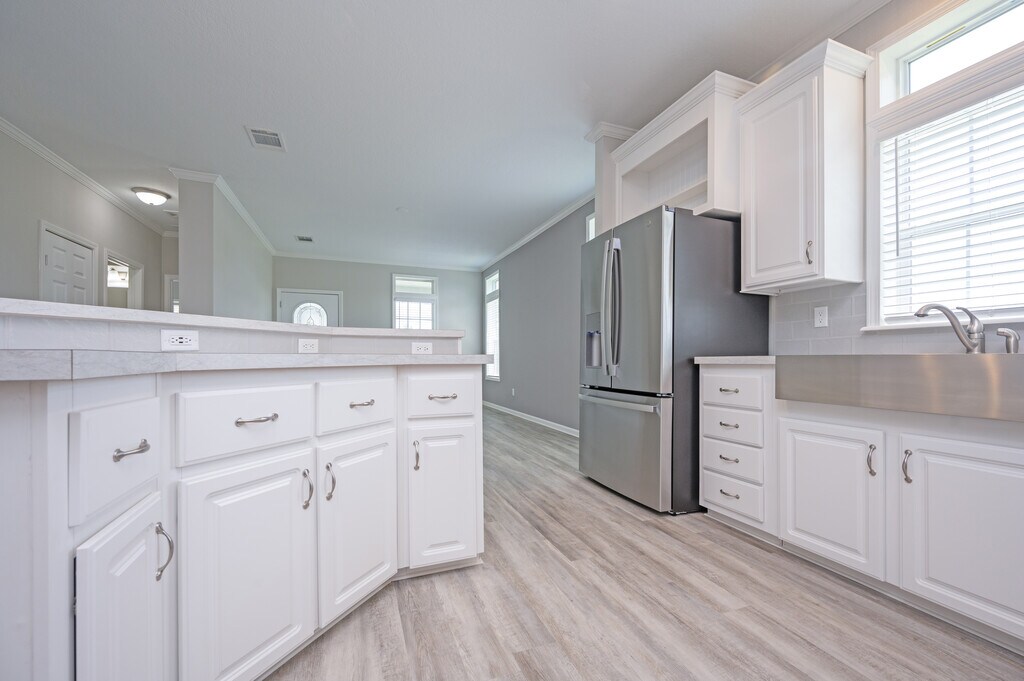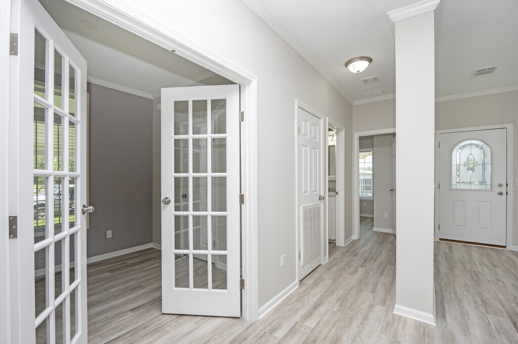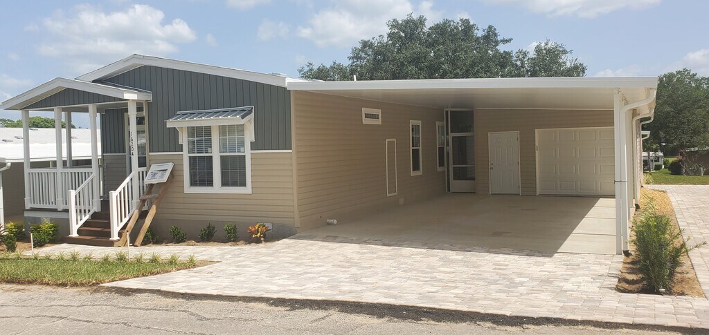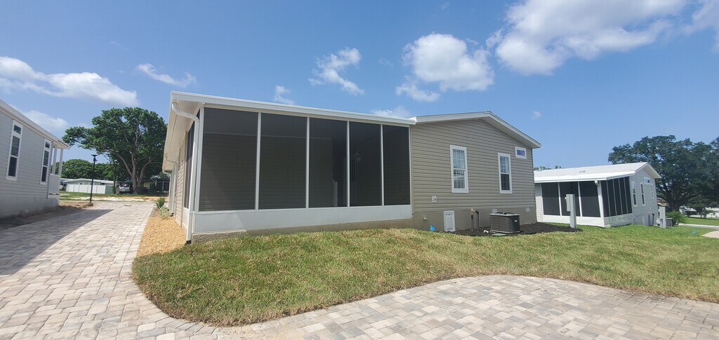 This brand new, move-in ready home is the Holiday Model which features 1456 sq. ft. of living space. The primary bedroom includes a generous walk-in-closet and adjoining bath complete with dual vanity and walk-in shower. The guest area includes a bedroom and bathroom. French-doors give access to the flex room, perfect for an office or hobby space. The laundry room serves as a secondary entryway, which provides access to the screen-enclosed lanai. Additional updates include tile backsplashes, paver carport, and attractive easy-to-maintain flooring.