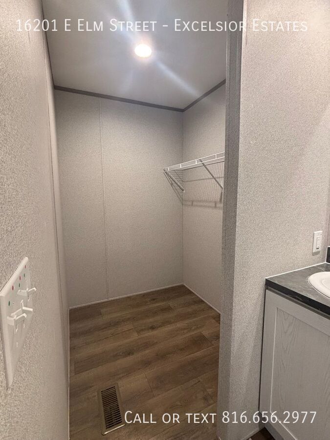 Welcome home to Excelsior Estates in Lawson, Missouri. This brand-new 3-bedroom, 2-bath mobile home offers a spacious and functional 16x76 layout with approximately 1,153 square feet of comfortable living space. Designed with both style and practicality in mind, this home features beautiful Arctic White shaker cabinets, Rosa Bosco countertops, black kitchen appliances, LED can lighting throughout, and durable lino flooring for easy maintenance. The open-concept living area flows into a well-appointed kitchen, creating a welcoming space for everyday living and entertaining. The primary suite includes a private bath with a fiberglass walk-in shower, while the additional bedrooms offer flexibility for family, guests, or a home office. Additional features include an electric furnace, in-floor ducts, water shutoffs throughout, and exterior details with white siding and black shutters for clean curb appeal. Located at 16201 E Elm Street, Excelsior Estates, Lawson, MO 64062, this home is a great opportunity to enjoy affordable living in a community setting with the peace of mind that comes with a new home. Central Air And Heat None Washer/Dryer Hook Up