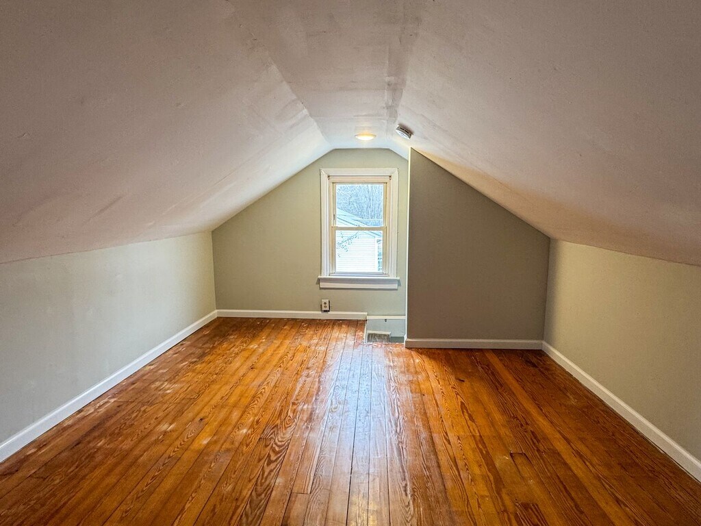 3 bedroom 1 bath home offering approximately 1218 square feet of living space; interior freshly painted, newer carpet & kitchen flooring; kitchen w/ electric stove & lots of cabinet space; dining room; living room w/ faux fireplace; bedroom 1 is off the Living Room; bedroom 2 can be accessed from the hallway and bedroom 3 has a private entrance from the enclosed rear porch; there is a den/office/study located upstairs, not to be used as dwelling quarters; this home has electric baseboard heating & does not provide air conditioning; laundry room off of the enclosed rear porch; very large rear back yard and lots of off street parking. No Pets, No smoking inside dwelling unit. Rent includes a resident benefit package. Ask for more details.