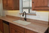 Welcome home to this adorable single level home with beautiful turf and recent exterior paint. This 3 bedroom, 2 bath home has loads of updates and upgrades inside as well. Open living area has wood look tile floors and lots of space. The eat-in kitchen has gorgeous custom wood cabinets, granite countertops, SS appliances, deep single sink, gas range. Bathrooms have been remodeled and have new flooring as well. Bedrooms all have plank flooring. The garage has many upgrades for the handy-person plus a new door and opener. Do not miss out on this affordable property! Home is subject to 2% monthly admin fee. A one time admin fee in the amount of $300.00 will be due at move in. Homes will not be held longer than 3 weeks. The deposit equal to one month's rent is due within 24 hours of approval. Renter's Insurance Required. Non Smoking Property. This property allows self guided viewing without an appointment. Contact for details.