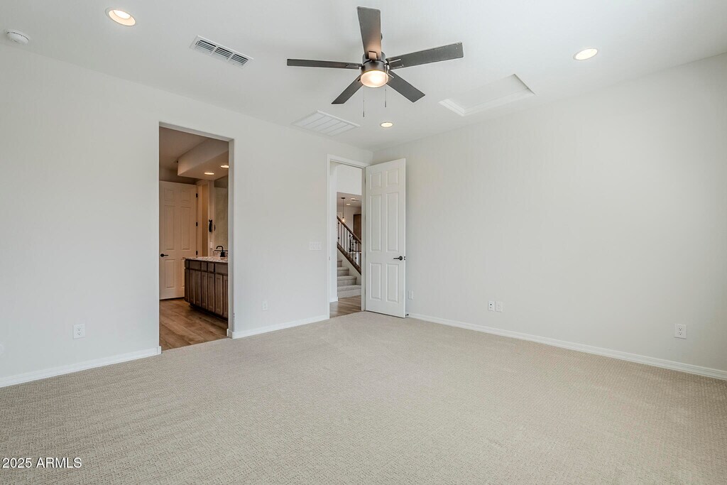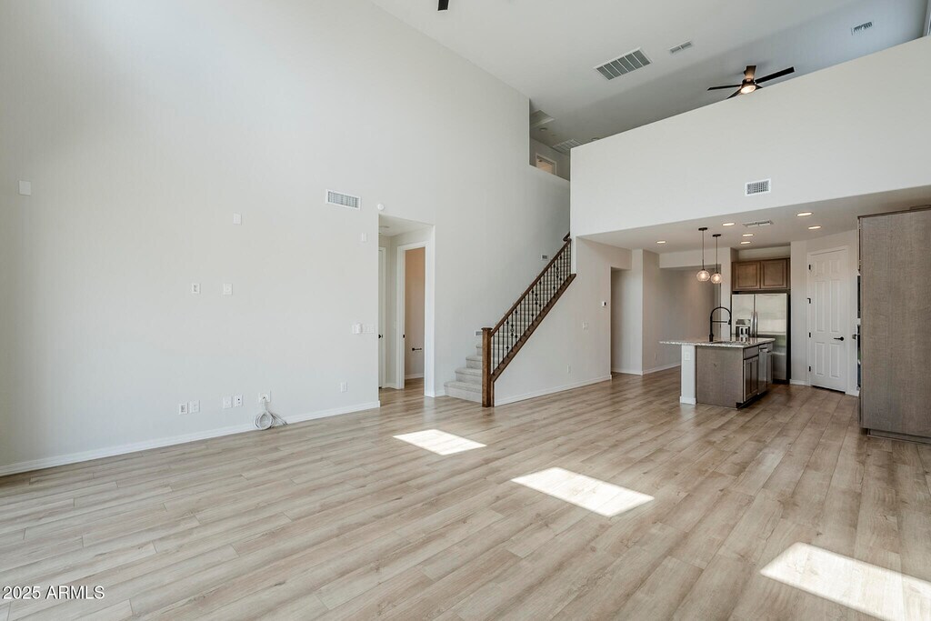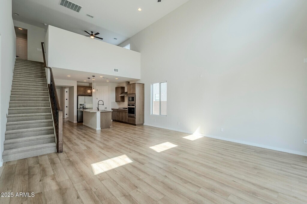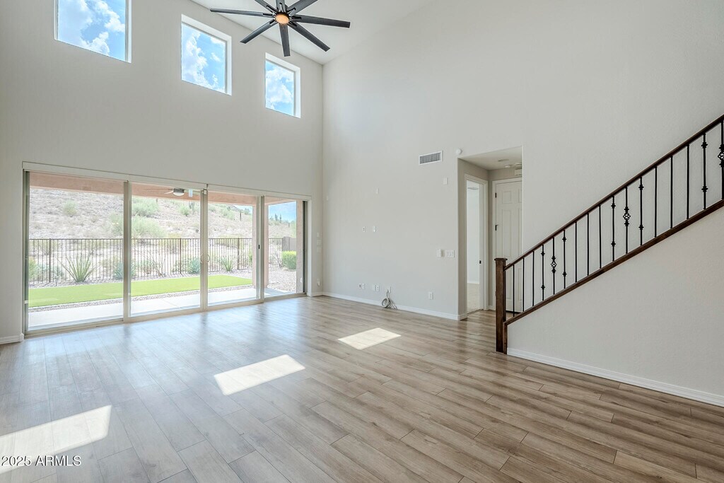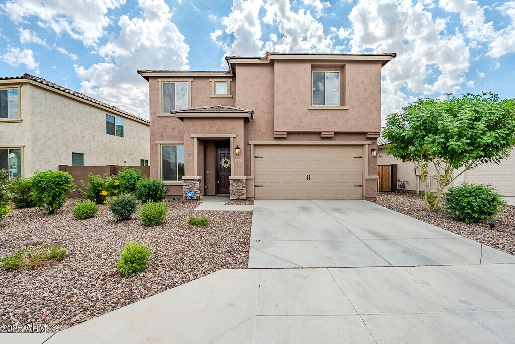 No Application Fees! Beautiful four bedroom plus den,three and one half bathroom San Tan Valley home with two primary suites and spectacular mountain views. This well maintained home features wood laminate flooring throughout the first floor,two tone neutral paint,upgraded two inch blinds,ceiling fans in each room,and twenty foot ceilings in the living room with a four panel patio door showcasing the backyard views. The upgraded kitchen includes granite countertops,tiled backsplash,upgraded cabinets,walk-in pantry,large island with breakfast bar,and stainless steel appliances. The first floor primary suite offers a walk-in closet,dual sink granite vanity,linen storage,and a tiled shower. A guest half bathroom and large laundry room with washing machine and dryer are also located on the first level. Upstairs you will find three additional bedrooms including a second primary suite,two full bathrooms,a loft,and a den with double doors that can be used as an office or bonus room. The backyard is perfect for entertaining and relaxation with a covered patio,synthetic grass,easy to maintain landscaping,open view fencing,and no neighbor directly behind the property. Located in San Tan Valley near schools,shopping,dining,and golf with convenient access to San Tan Mountain Regional Park for hiking,biking,and outdoor recreation. The home also offers quick access to Queen Creek Marketplace and major roadways for commuting throughout the East Valley. All Denali Real Estate residents are automatically enrolled in the Resident Benefits Package (RBP) for $55.00/month which includes Renter's Liability Insurance,Credit Building to help boost the resident's credit scores with timely rent payments,up to $1M Identity Theft Protection,HVAC air filter delivery (for applicable properties),our best-in-class resident rewards program,and much more!