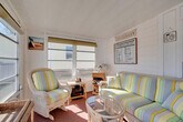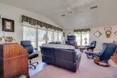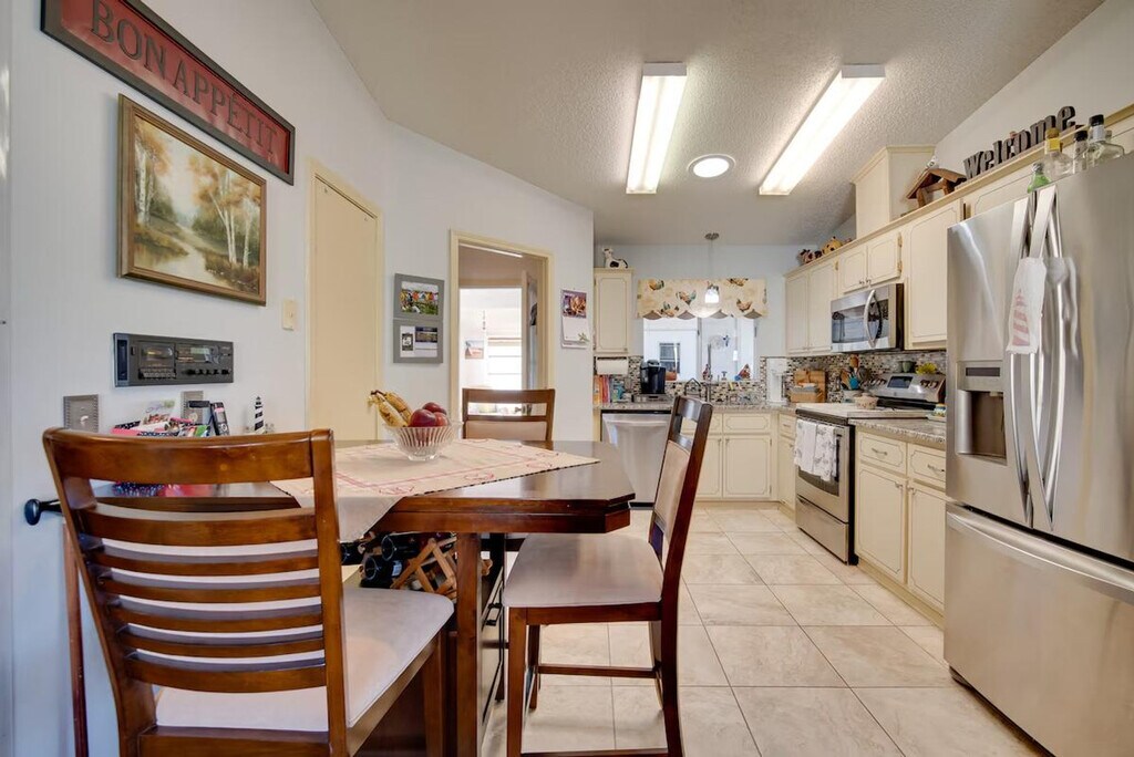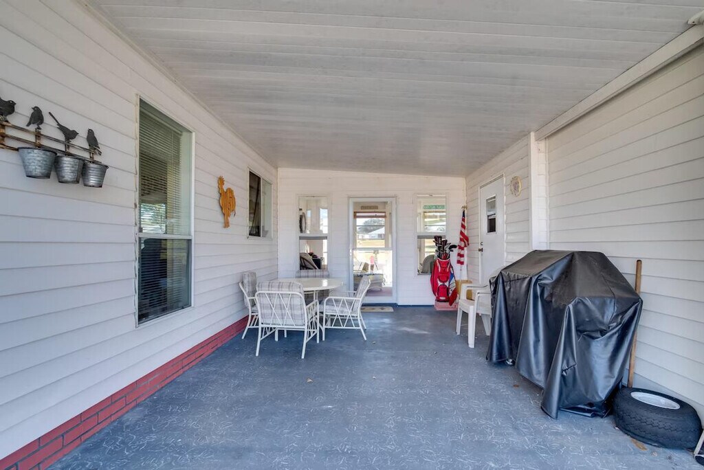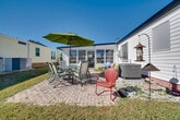 Feel at home in this Lady Lake vacation rental, overlooking the 10th fairway of the Orange Blossom Hills Golf Course. This single-story home offers 2-bedrooms and 2-bathrooms and is the perfect setting for a laid-back retreat. There is one step up to the front door. This home features cable TV, a Florida room, 2 dining tables, and ceiling fans. The kitchen is equipped with a stove/oven, microwave, refrigerator, coffee maker, cooking basics, dishware/flatware, and a dishwasher. Enjoy the lanai, covered patio, grill, and outdoor dining area. Additional amenities include central air conditioning, a washer/dryer, 2 hair dryers, linens/towels, and an iron/board. Complimentary Wi-Fi is available. Access to the community pool, rec center, and golf course are available for an additional fee, paid on-site. A $50 fee is required by the HOA, which must be paid on-site upon arrival. After payment, the HOA will issue an Amenity Privilege Pass granting access to all community amenities. Parking is available in the driveway for 2 vehicles. Enjoy golf course views and lakeside beaches in this gated community. Visit Eaton's Beach before heading to Amerikanos Grille for gyros and Greek tacos. This property is located in a 55+ only community and may not be suitable for young children. Guests must be at least 55 years old to book. No events, parties, or large gatherings are allowed. Guests will have access to the entire property via keyless entry. [SI]