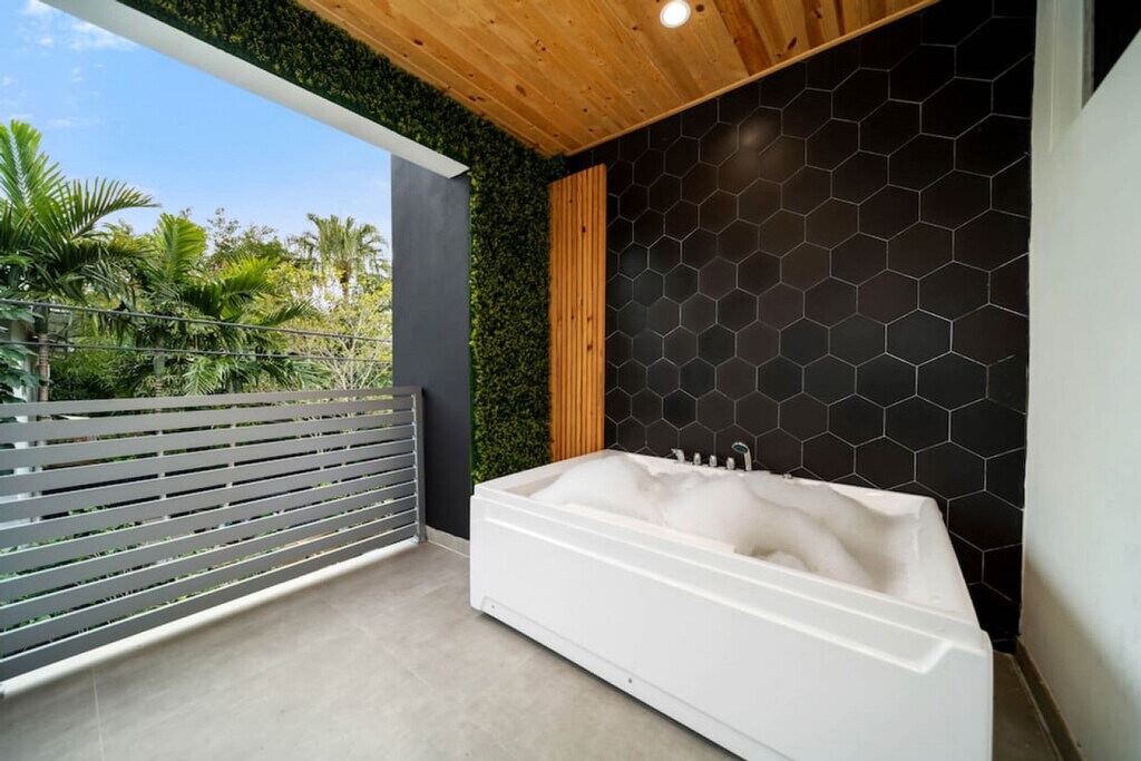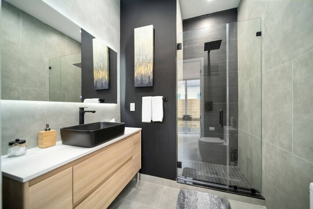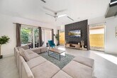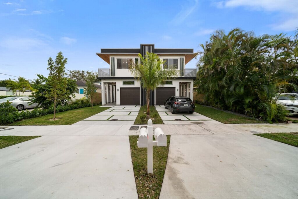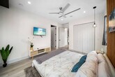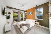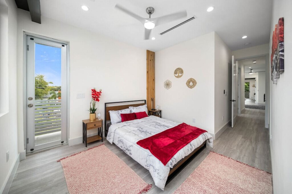 Feel at home in this modern Zen house located in the posh neighborhood of Victoria Park, just 5 minutes from the nightlife of Las Olas and the beach. This property is the ultimate 2 for 1 deal, with access to both Zen Home listings next door to each other, perfect for a large group of friends, family, and colleagues alike. The home features a contrast of cool and warm colors, highlighted in tasteful furniture and decor. Smart appliances, LED mirrors, and home automation features provide a modern touch, balanced by greenery and wooden accents for a warm feel. The first level has a fully equipped bathroom, a full kitchen with a large kitchen island, a dining table for 6, and an oversized couch that converts into a sleeper sofa. The kitchen is equipped with large pots and pans, bakeware, coffee maker, tea kettle, blender, rice cooker, and toaster. Upstairs, the loft area includes a tv, seating area with a futon that converts into a sleeper sofa. The master bedroom includes a smart tv, walk-in closet, full bathroom with a sauna machine that converts the shower into a shower steamer, outdoor balcony, patio furniture, and a sleek hot tub. The "Blue Room" has relaxing hues of blue, gray, and gold, a full-sized mirror, a full bathroom, and a closet. The "Red Room" has pops of red, another walk-in closet, a full bathroom, and an outdoor balcony. Located inside the garage, you’ll have the capability to charge your EV. Parking allows for one vehicle inside the garage and two vehicles on the driveway for each unit. There is a sound system located on each level and control knobs located near the bottom level patio to control the sound outside. Pets are welcome with a fee of $20 per pet per night for 1 pet and a $30 flat fee per night rate for 2 pets. Located in Victoria Park, this home is centrally located to everything Fort Lauderdale has to offer. It is only a 5-minute car ride from both the beach and the Las Olas strip, where you'll find plenty of dining and shopping options. For nightlife, Riverfront is only a 10-minute Uber ride away. Holiday Park is a few blocks away, a 5-minute walk. Check-in time is 4pm and check-out time is 11am. Fort Lauderdale city ordinance quiet hours are from 10pm to 8am. No smoking is allowed inside the house, and any violation will result in a $1000 fine. The loft area includes a small workspace with a desk perfect for working from home. [SI]