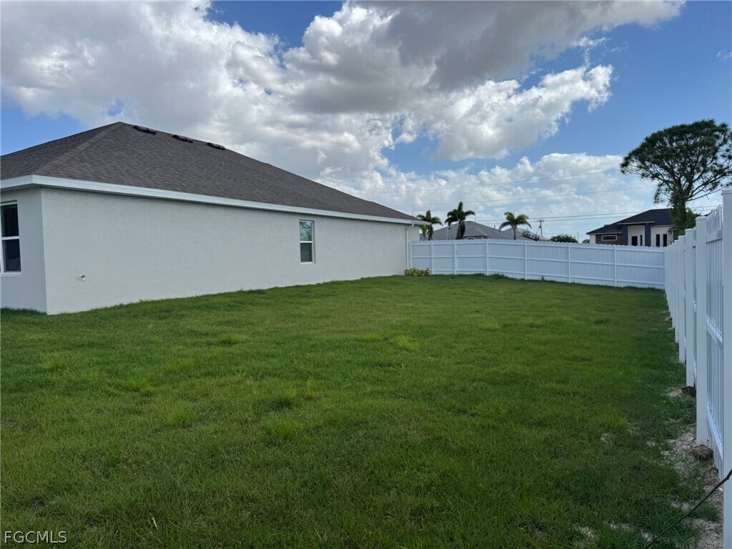 This fantastic Single Family Home features a massive 3-car garage for all your vehicles and toys,it sits on a generous triple lot offering plenty of space and privacy,and includes a fully fenced backyard – ideal for pets,kids,gardening,or entertaining. Lots of room to park,store boats/RVs,or just enjoy the extra outdoor space!" Enjoy spacious 4-bedroom,3-bathroom home Located in a quiet and desirable area of Cape Coral. This well-maintained residence offers an open and functional floor plan with plenty of natural light,perfect for comfortable living and entertaining. The home features a modern kitchen with ample cabinet space,large living and dining areas,and generously sized bedrooms including a private primary suite with an en-suite bathroom. One of the most valuable features of this property is THE WHOLE HOUSE REVERSE OSMOSIS SYSTEM,providing purified water throughout the entire home. NO WATER BILL required,making it both convenient and cost-effective for tenants. Conveniently located near shopping,dining,schools,and major roads,minutes away from the Seven Islands,while still offering the tranquility of a residential neighborhood. A fantastic opportunity to live in a beautiful,spacious home in one of Cape Coral’s growing areas. “Available for move-in mid-May — secure it now before it’s gone.”