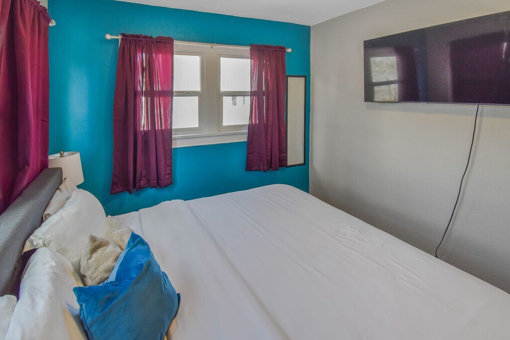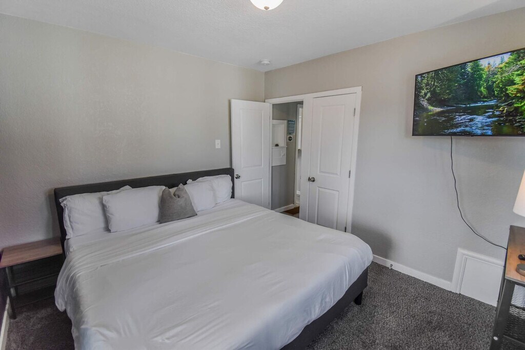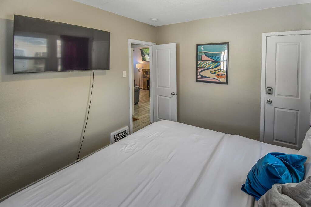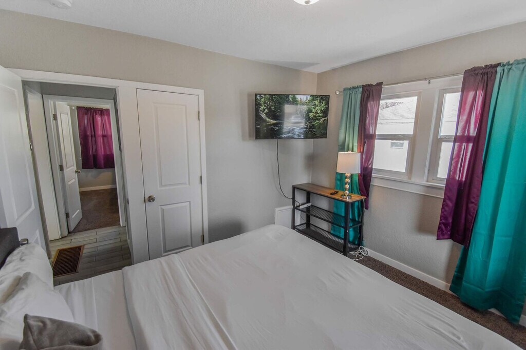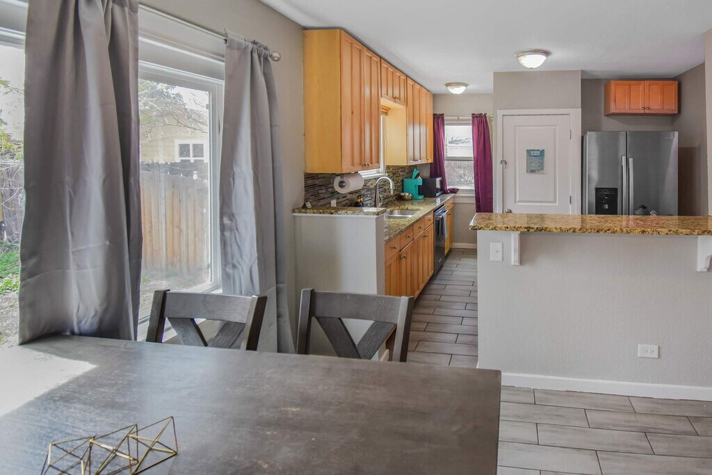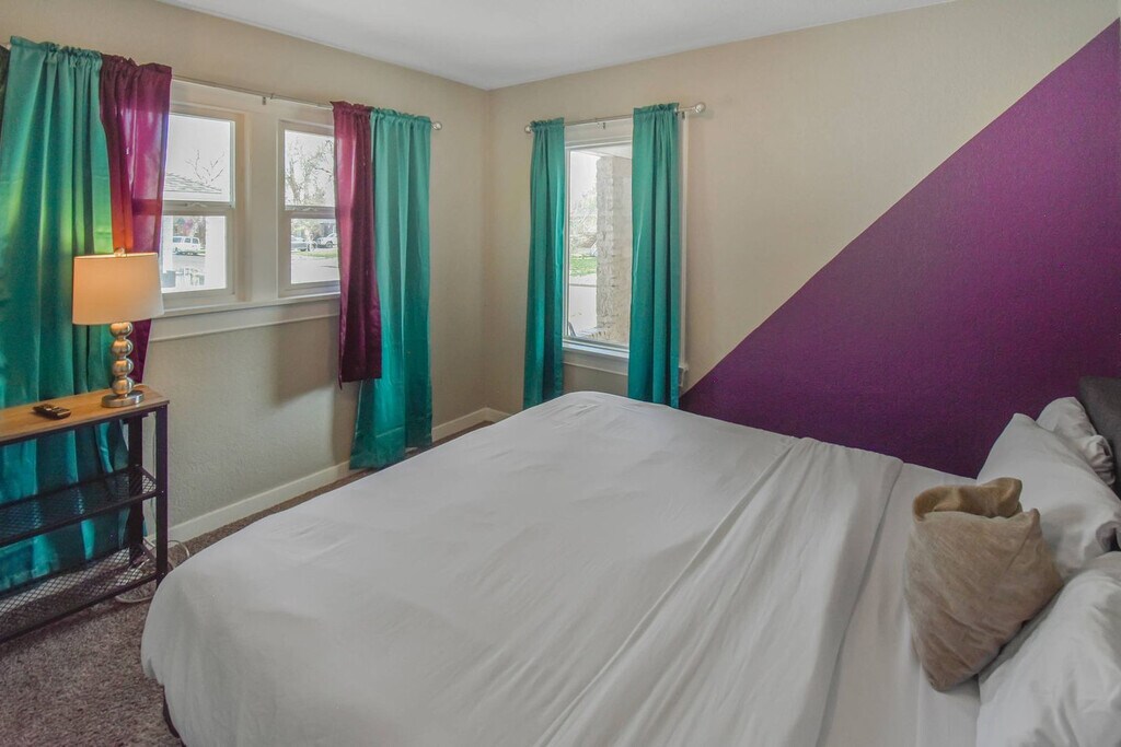 Feel at home in this modern 2-bedroom upper-level retreat in Denver. This apartment is conveniently located near the Denver Zoo, Cherry Creek Mall, and downtown attractions, making it perfect for families, couples, or friends. This remodeled single-family home has been thoughtfully divided into two affordable units, each with its own private, secure entrance. The home is equipped with a traditional heating and cooling system and a smart thermostat for easy remote control. The temperature is usually set between 68-72°F, and each unit also has stationary fans and space heaters to keep you comfortable. Enjoy the fully stocked kitchen and Smart TVs. Dogs are welcome, and off-street parking is available. Located in a vibrant, centrally located Denver neighborhood, this apartment is minutes from Denver’s best attractions, including the Denver Zoo & Museum of Nature & Science, City Park, Colfax Avenue, and Cherry Creek Shopping Center. Downtown Denver is a 15-minute drive away. Quick access to I-70 & I-25 makes day trips easy. RTD bus routes are nearby on Colfax Avenue, and a light rail station is a short drive away. Uber & Lyft are available for convenient transportation. Quiet hours are from 10 PM to 8 AM. A full-time resident lives in the lower unit. If there are noise complaints, fines may be enforced, or you may be asked to vacate without a refund. If evidence of a party or smoking/vaping is reported, there will be a fine. Please clean up after your dog, and if there is excessive clean up upon checkout, you may be invoiced for extra cleaning. Unapproved pets are not allowed. Registration Number: 2021-BFN-0009264 [SI]