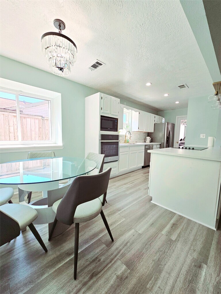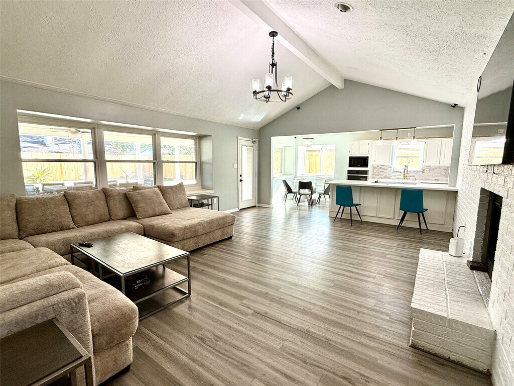 A well-maintained and updated 1-story home welcomes you through the entry,highlighted with luxury vinyl flooring throughout the living spaces. The high vaulted ceiling in the living room with a quartz stone wood-burning fireplace,a lot of natural light,and a window seat on top of the space. The second bath is highlighted with a double sink vanity,lighting,and double mirrors. The kitchen that any chef will fall in LOVE with,quartz countertops,oversized center island,and tile backsplash. Imagine the fun you can have with this pool and large backyard oasis! Primary bathroom is updated with frameless shower door. Second bathroom is luxuriously remodeled. A Definite MUST see! Washer,Dryer,Refrigerator,furniture will stay. Sure can't this at this price. Close to everything i.e. Baybrook Mall,NASA,and major freeways. Backyard is great for kids to play and just entertaining. MLS# 66248405