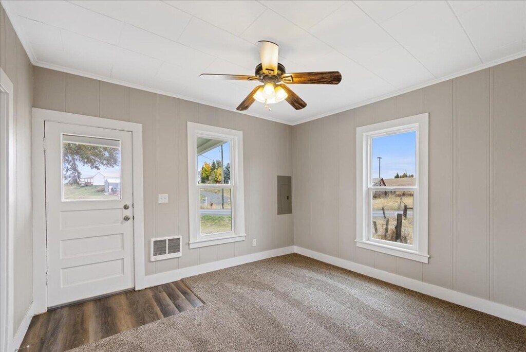 Welcome to your charming farmhouse retreat in Fairfield, WA! Nestled in the heart of picturesque surroundings, this delightful two-bedroom, one-bathroom home offers a serene escape from the hustle and bustle of city life. As you approach the property, you'll be greeted by the tranquility of the countryside, with vast open fields and fresh, clean air. The farmhouse itself exudes warmth and character, featuring a cozy living space perfect for relaxation and unwinding. Convenience is key, and this farmhouse comes equipped with a washer and dryer, ensuring that laundry day is a breeze. Enjoy the luxury of having these essential appliances at your fingertips. Step outside onto the property to discover a sprawling yard, ideal for outdoor activities, gardening, or simply savoring the breathtaking views. Picture yourself sipping your morning coffee on the front porch or hosting gatherings with friends in the expansive backyard. Located in the heart of Fairfield, you'll have easy access to local amenities while still relishing the peaceful countryside lifestyle. This farmhouse is not just a residence; it's an experience—a place to create lasting memories and embrace the joys of rural living.