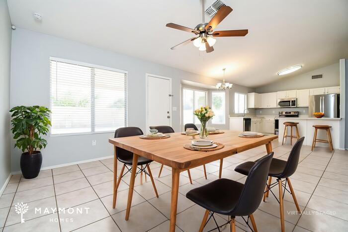 MOVE-IN READY This home is move-in ready. Schedule your tour now or start your application today. Monthly Recurring Fees: $25.00 - Smart Home $10.95 - Utility Management Located at 16215 S Beth Ln in Chandler, AZ, this 3-bedroom, 2-bathroom home offers 1,396 square feet of well-organized single-level living designed for everyday ease. A tile roof and attached two-car garage create a clean, welcoming exterior within an established residential setting. Inside, the layout flows naturally through the main living spaces, with tile and LVP flooring providing durability and continuity throughout the home. The living room connects seamlessly to the dining area, creating a central gathering space filled with natural light. The kitchen features generous cabinet storage, ample counter space, stainless steel appliances, and a center island that adds both workspace and seating. The primary bedroom is positioned for privacy and includes an en suite bathroom with dual sinks, a tub and shower combination, and a walk-in closet. Two additional bedrooms are located nearby and share a second full bathroom, offering flexibility for a variety of needs. Ceiling fans and neutral finishes throughout the home contribute to a comfortable and cohesive interior. Sliding glass doors at the rear of the home open to a covered patio, extending the living space outdoors and overlooking the backyard. The home also includes smart features such as a smart lock and smart thermostat for added convenience. Community amenities, including a pool, provide additional options for recreation. Ideally located near Loop 202, this home offers convenient access to shopping, dining, and major employment corridors, with downtown Phoenix approximately 25 minutes away. With its efficient layout, smart features, and connected Chandler location, this home presents a comfortable and practical living opportunity. Apply now! *Maymont Homes provides residents with convenient solutions, including simplified utility billing and flexible rent payment options. Contact us for more details. This information is deemed reliable, but not guaranteed. All measurements are approximate. Actual product and home specifications may vary in dimension or detail. Images are for representational purposes only. Some programs and services may not be available in all market areas. Prices and availability are subject to change without notice. Advertised rent prices do not include the required application fee, the partially refundable reservation fee (due upon application approval), or the mandatory monthly utility management fee (in select market areas.) Residents must maintain renters insurance as specified in their lease. If third-party renters insurance is not provided, residents will be automatically enrolled in our Master Insurance Policy for a fee. Select homes may be located in communities that require a monthly fee for community-specific amenities or services. For complete details, please contact a company leasing representative. Equal Housing Opportunity. This property is subject to homeowners' association (HOA) governance; restrictions and covenants may apply. Estimated availability date is subject to change based on construction timelines and move-out confirmation. This property allows self guided viewing without an appointment. Contact for details.